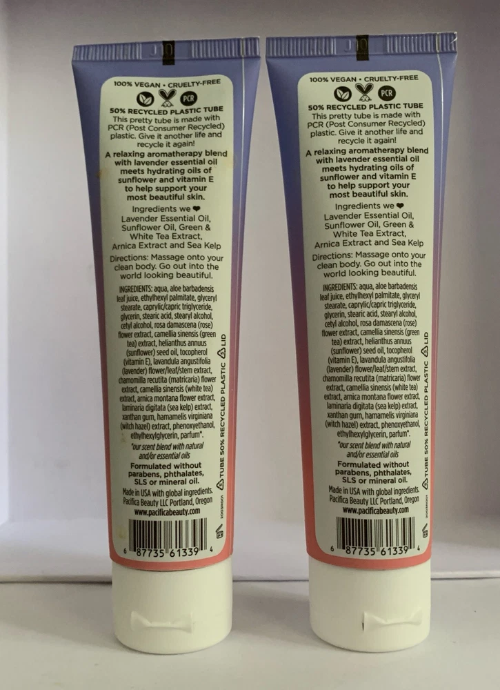 2x Pacifica Lavender Moon Body Lotion With Lavender, Rose & Chamomile 50mL Each.