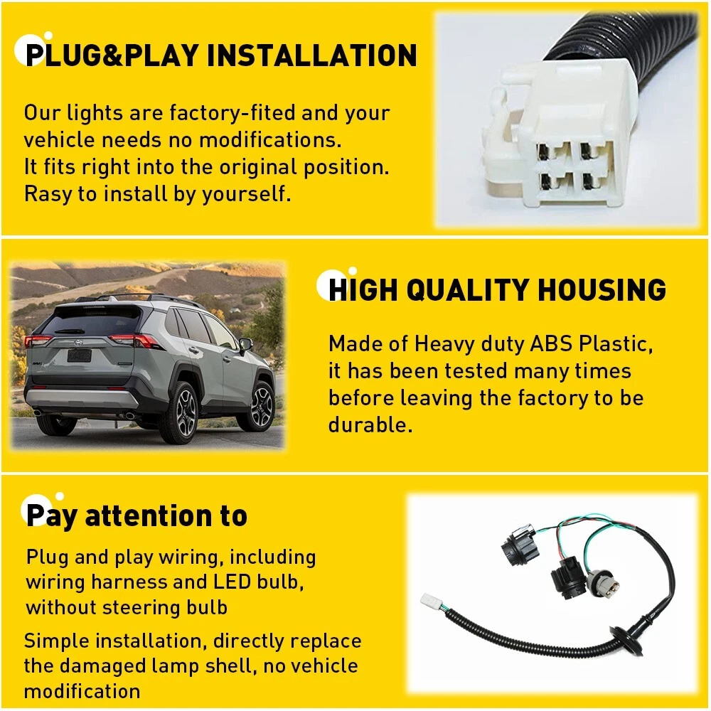 Fit for: For 2019-2023 Toyota Rav4 Specifications: OE:81550-0R090, TO2804148(Left) 81550-0R090??TO2805148(Right) LED type: LED Cover color:Red Placement on vehicle: left+Right Waterproof:IP67 Features: *Easy to install: Direct replacement, drilling and cutting are not required. *Superior quality: Superior material with toughness and heat resistance functions. *Plug and play, it includes led bulb and wire harness (the turn signal bulb is not included). *Note: 1.Please confirm the OE number before purchasing!!! 2.Professional installation is required!!! 2x Tail Light Rear Passenger & Driver Lamp Outer Brake For Toyota RAV4 2019-2023 Fit for: For 2019-2023 Toyota Rav4 Specifications: OE: 81550-0R090, TO2804148(Left) 81550-0R090??TO2805148(Right) LED type: LED Cover color:Red Placement on vehicle: left+Right Waterproof:IP67 Features: *Easy to install: Direct replacement, drilling and cutting are not required. *Superior quality: Superior material with toughness and heat resistance functions. *Plug and play, it includes led bulb and wire harness (the turn signal bulb is not included). *Note: 1.Please confirm the OE number before purchasing!!! 2.Professional installation is required!!! Packaging include: LED Tail Light*2 (left+right) AUXITO 10x T10 White Light Specifications: AUXITO LED Light Bulb has specialized in LED lights for many years. Our mission is to produce high quality automotive LED light bulbs. We believe in our LEDs and offer warranty on item(s) confirm to be manufacturer defect. Socket:T10 194 168 192 2825 W5W Lamp beads: 2835SMD Input voltage: 12V-24V Product color temperature: 6000K. Product brightness: 240LM per light Life: 30,000 hours. Working environment: -40 °C ~ 105 °C Waterproof rating: IP65 Lifespan: 50000 working hours ,Adopt imported chips, stable quality, long service life Cross Reference: W5W 194 147 152 158 159 161 168 184 192 193 259 280 285 447 464 555 558 585 655 656 657 1250 1251 12522450 2652 2921 2825 906 579 Application: Interior Door Light Bulb / side Marker Light Bulb rear / front Tail Light Bulb Inner / License Light Bulb / Glove Box Light Bulb Stepwell light bulb / Trunk or Cargo Area Light Bulb/ Dome Light Bulb Check Engine Light Bulb / Courtesy Light Bulb / Parking Light Bulb Center High Mount Stop Light /Dome Light Bulb / Map Light Bulb Door Mirror illumnination light bulb Package Included: 10x LED Bulbs US STOCK Item Specifics Light Color Red Bulbs Included Yes Items Included Bulbs Wattage 10 W Placement on Vehicle Left Outer Rear Right Suitable For Accessory Light Brake Light Tail Light Bulb Shape Code C5W Lumens 4800 lm Manufacturer Warranty 1 Year Voltage 12 V Features Sealed Assembly Finish Polished Lighting Technology LED Performance Part Yes Other Part Number TO2804148 Color Temperature 6500K Fitment Type Direct Replacement Bulb Fitment Code C5W Manufacturer Part Number 81560-0R090 11-9086-00 Number of Bulbs 2 Superseded Part Number 81550-0R090, TO2804148 Vintage Part Yes Brand Unbranded Type Tail Light Assembly Interchange Part Number 81550-0R090 81560-0R090 OE/OEM Part Number 81550-0R090 81560-0R090 TO2804148 Housing Color Black Model Tail Light Lamp Replacement Fitment For Toyota RAV4 2019-2020 2021 Lens Color Red&Clear Universal Fitment No Country/Region of Manufacture United States Bulb Life Hours Up to 30,000 Hours Model Tail Light Lamp Replacement Superseded Part Number 81550-0R090, TO2804148 FAQ ♥ If you have a decoding problem or any other problems, please contact us first, we will help you with it. We will reply you within 24 hours in working days. I'm a new seller, thanks a lot for your trust and convince! I will serve you with all my heart. ♥ Q1: Will this bulb fit my vehicle? A: We can match almost any vehicle to one of our bulb sizes. eBay only lets us include some vehicle fitments per listing, but if your vehicle does not show up on the compatibility table at the top of our listings, welcome you to contact us for free consulation before purchasing a product. Q2: My item has not arrived, what's taking so long? A: Sometimes items take longer than expected, especially if it’s going far or to rural area. Check with your post office to see if your item has been held up. Sometimes Royal Mail will not update a tracking number until it has arrived at its destination. If your item still don't arrive after a few days, let us know so we can double check for you and help solve it asap. Q3: My bulbs won't fit, help! A: Special bulb holder may be required. See if you can take the holder from the stock bulb. If not, let us know. The bulb size may be wrong, double check the item you received with the item you ordered. Do you have an aftermarket lighting housing? These may not be perfectly fitted for aftermarket bulbs and will require some manual modifications. Q4: Neither side lighting up? Both sides flicker, hyper flash, or work inconsistantly. A:Check the light fuses, and then check the ballast plugs to insure correct installation. If this doesn't work, there may be a voltage problem with the vehicle. You probably just need a relay or capacitor. Even though some bulbs are builtin resistors, they may still need a decoder. Pay & Ship (1). We gladly accepts payment via PayPal, We will ship your item(s) within 24 hours. (2). Before payment, please keep the consistency of Paypal address and ebay address. (3). Quantity orders are welcome! Returns (1). We offer 60 days free return policy. Please contact us within 60 days from the date you receive your order if you have any issues with the product or want return. Refund will be send after we got your resend package. (2). All returned items should be in the original packaging , return tracking information should be provided . Contact Us (1).Negative feedback will not help resolve any problems you have, please contact us via eBay messages before leaving negative feedback , our customer service will make best effort to help you with the issues. (2).We maintain high standards of excellenceand str