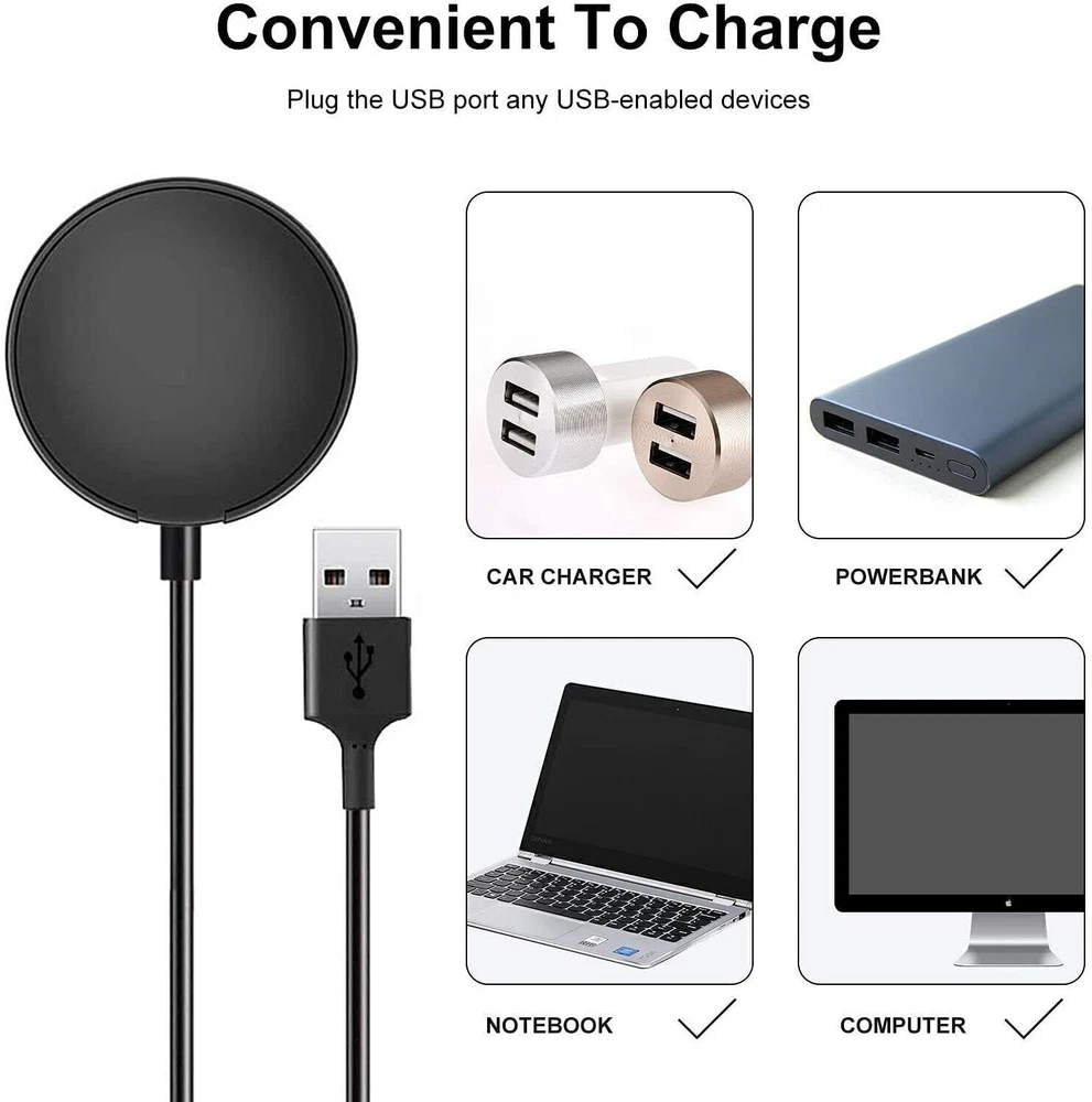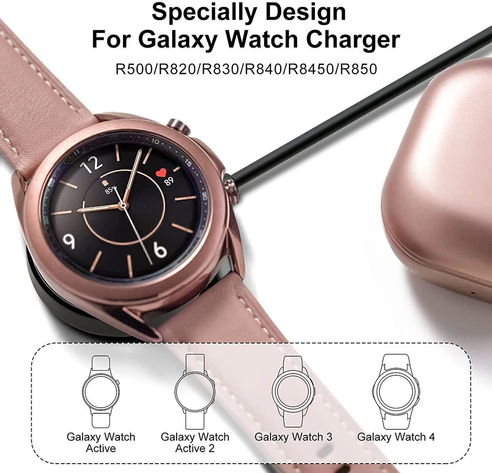 Wireless Magnetic Charger Dock For Samsung Galaxy Watch 5/4/3/R500/R820/Active 2/1 Perfect Compatibility: The charging dock is compatible with Samsung Galaxy Watch 6 , Samsung Galaxy Watch 6 Classic , Samsung Galaxy Watch 5, Samsung Galaxy Watch 5Pro , Samsung Galaxy Watch 4 44mm/40mm, 4 Classic 46mm/42mm, Watch 3 45mm/41mm, Active 2 44mm/40mm, Active 1 40mm. Good Quality: The Samsung Watch 3 charger is made of high quality material, reliable bending tests make it embrace a longer lifespan. Place it, charge it. Long Lasting: Made of premium material, power protection inside prevents the watch from being damaged by overcurrent and avoid overheat when connected to USB power source. 3.3ft/1m Cable Length: This charger dock provides extra long charging cable to give your smart watch a boost in the office, at home, in car or in travels. Compatibility: Compatible with Galaxy Watch 6 Compatible with Galaxy Watch 6 Classic Compatible with Galaxy Watch 5 Compatible with Galaxy Watch 5 Pro - Compatible with Galaxy Watch 4 (40mm SM-R860) - Compatible with Galaxy Watch 4 (44mm SM-R870/SM-875) - Compatible with Galaxy Watch 4 Classic (42mm SM-R880) - Compatible with Galaxy Watch 4 Classic (46mm SM-R890 /SM-R895) - Compatible with Galaxy Watch 3 (41mm SM-R850) - Compatible with Galaxy Watch 3 (45mm SM-R840) - Compatible with Galaxy Watch Active 1 (40mm SM-R500) - Compatible with Galaxy Watch Active 2 (40mm SM-R830) - Compatible with Galaxy Watch Active 2 (44mm SM-R820)