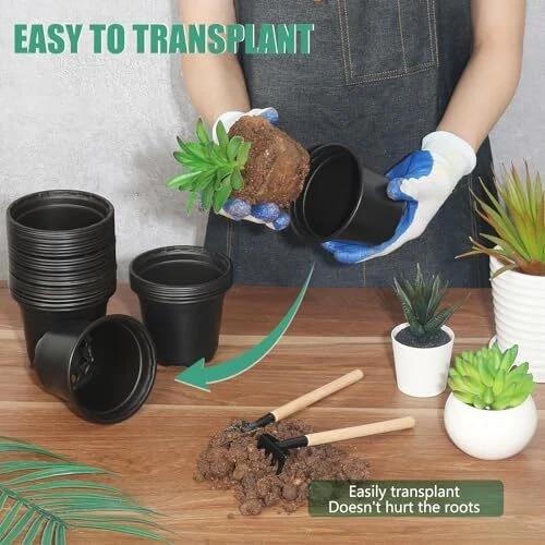 Return Policy Fast Delivery Trusted seller 3 4 5 6 Inch Nursery Pots for Plants, 60 Pack Plastic Seeds Starter Pots with Drainage Holes, Small Plastic Plant Nursery Pots for Succulents Seedling Cutting Transplanting Product Description 4 Inch Nursery Pots: You can get 60 packs of 4-inch plastic nursery pots (4.0" W x 4.0" W x 3.4" H). Bottom drainage holes design: The nursery pots with drainage holes at the bottom effectively prevent waterlogging, promoting healthy plant growth. Lightweight and durable: Nursery pots are usually made of high-quality plastic, making them both lightweight and durable, easy to carry and handle. 60 packs are cost-effective: Nursery pots are more affordable compared to pots made of other materials, making them suitable for large-scale planting. Multi Usage:Whether you're starting seeds indoors or outdoors, these nursery pots are suitable for succulent plants, mini landscape plants, and planting most small and medium-sized plants, vegetables, and flowers. Shipping Returns Payment Shipping Shipping is FREE to all addresses other than APO/PO boxes in the lower 48 states. All our stock ships from US-based warehouses. Shipped via USPS or UPS (depending on location and package weight) Unless stated otherwise, all orders will ship within 24-72 hours of your payment being processed. Check our feedback to see the great reviews of FAST shipping we offer. Returns Seller does not accept returns Payment We currently accept payment via eBay managed payments only. Once payment is cleared, we will dispatch your shipment within 1-3 business days. Please refer to the "Shipping" tab for more information regarding shipping speed to your destination.