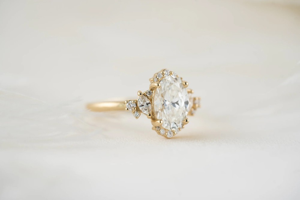 This romantic and vintage-inspired ring features a brilliant oval-cut Moissanite center stone set in a sparkling halo of smaller Moissanites. The delicate band is crafted in 925 Strling Silver and 14K Micron adorned with sparkling pave moissanites, adding a touch of elegance and sophistication. ELEGANT LOOK! GREAT SHINE! Stone Color - White Shape of Stone- marquise cut Approx. Weight of Stone-3 Carat Cut - Excellent Metal - Stamped 925 streling silver Size of Ring – US7 This ring is handcrafted with utmost care. Would make an ideal gift for someone special. The stone has excellent cut and luster. Comes in attractive packaging. CERTIFICATE OF AUTHENTICITY PROVIDED Shipping : Shipping is by UPS/SPEEDPOST/FEDEX or similar shipping agencies to reach you in 9-12 business days after processing the order. Tracking is provided. Please note: Jewelry items can take up to 10-12 business days to process to take care of ring sizing if any, polishing, finishing, packing and handling, certification, documentation etc. Shipping Charges include eBay fees on Shipping, packaging, certification costs, manpower costs, overheads, taxes etc. in addition to actual courier/postal expenses which have increased substantially as a result of pandemic & global economic conditions. We do not artificially increase the price of the products to include shipping charges but only charge what shipping actually costs us. Combined Shipping: Combined shipping discount is available up to 5 (Five)items in an order to be purchased within 5 days. You can continue to buy- Any additional items above 5 in quantity will be considered a new order. This is to avoid pilferage en-route as well as to ensure that you are happy with the merchandise. Once you have received their items you may buy additional items again. This limit may be revised for repeat and regular customers. Payment: Buyers are requested to pay within 3 (Three) days of purchases. eBay will automatically open unpaid item cases in case payment is not received within this period. The item will also be available for purchase to other buyers till such time that the payment is received. Customs and Taxes: Any customs duties, charges and local taxes are subject to local laws and vary from country to country and hence the payment of any eventual custom duties, charges, levies and taxes etc will be at the buyer's expense. We do not have any control on the same. Returns & Refunds: You can return the item within 14 days of receiving the parcel. - Please return in original packing. Buyers are required to check and ensure that the item/s are in good condition and as per item listing on eBay as no claims for returns and refunds will be entertained thereafter. The returned item should be unused and in original and undamaged condition. Buyer will be required to ensure that the item is sent by trackable shipper. Shipping charges are non-refundable. Refunds are made by PayPal and may take up to 5-7days after receiving back the product/s. Disputes: We aim to settle all disputes amicably. Please do not open any dispute on eBay for dis-satisfaction or for non-receipt or to return an item. We are available through ebay messages system and most messages are replied in a few hours. Personalized satisfaction is of utmost importance to us. Feedback: We always provide excellent feedback to our buyers and expect the same in return with 5-star ratings. In case of any dissatisfaction or any other reason please do contact us before leaving any neutral or negative feedback - we will strive our best to resolve all issues to your satisfaction. Metal: silver is 925 Streling Silver with Nickel Free Rhodium Plating. Please refrain from buying if you have allergic reaction to metals. We will not be responsible for any health problems in this regard. Legal Disclaimer: Refund or any claim liability for the buyer is only limited to the value of the item purchased. No additional claims will be entertained for any other reason whatsoever. Please note that since various labs may have different testing methods and the interpretation of all our Diamonds and Stones may differ from one lab to another as well as from one Gemologist, appraiser and Jeweler to another, we will be unable to accept another Lab Certificate or the judgement of any other third party including any Gemologist, appraiser, Lab, Jeweler etc. By consenting to buy our items it is understood that you have read, understood and agree to the terms and conditions as well as the FAQ for the Diamonds and Jewelry being sold buys. What Guarantee do you offer? We offer full100% Money Back Guaranteed in case of any manufacturing defect. Please also refer to the Refund Policy as mentioned our item listing.