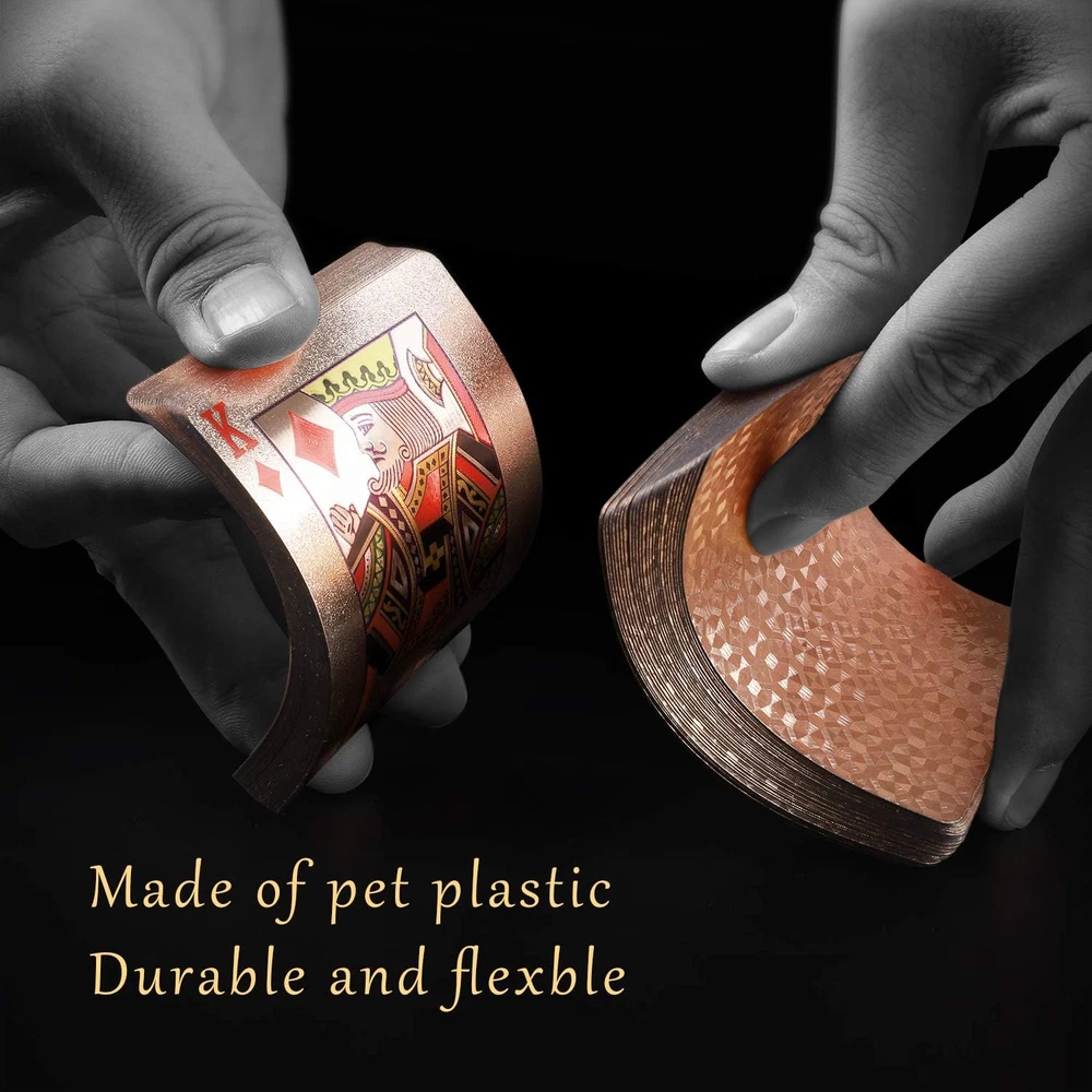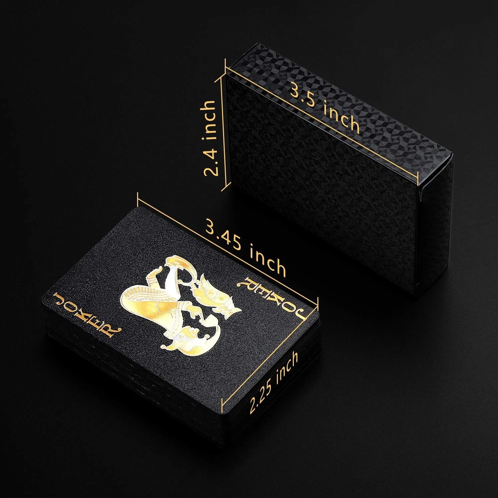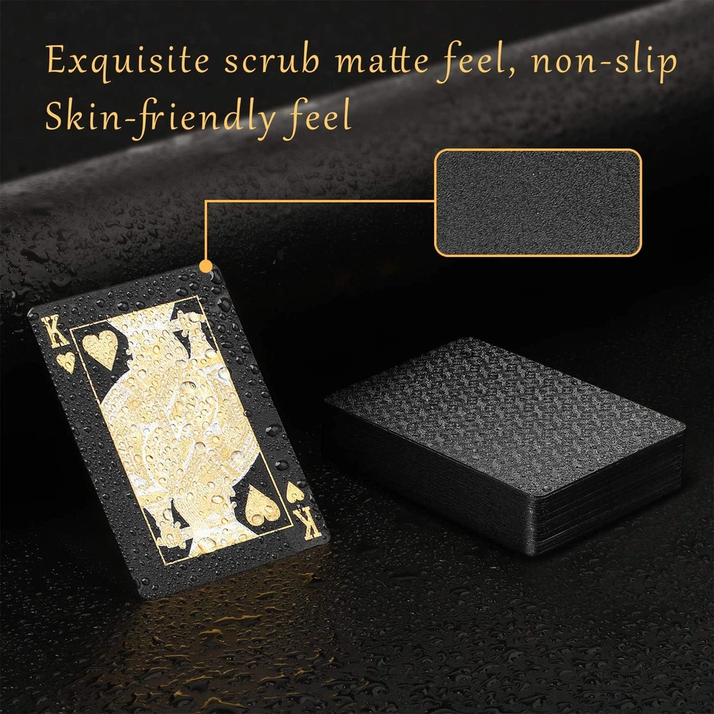 Pack Of 3 Unique Trick Cards Deck- package contain 3 cool black gold and rose gold deck of cards, each one with 55 cards: (13 hearts/13 spades/13 diamonds/13 clubs) plus 2 jokers, 1 pet certificate, measuring 2.5" X 3.5" With a standard index .additional each cards with an attractive gift box with hard plastic easy for preservation, and the shrinkable film wrapped protect the cards. Flexible & Superior Material Standard Card- these playing cards are made of high-grade PET material, plastic is much more durable that paper and will last longer, which feature unmatched flexibility and durability. Scuff and break resistant, won't fade last significantly longer then traditional cards. 100% Waterproof Cards- easy to clean the dirt, fingerprints or smudges on the surface of the card, easy to clean with water and not easy to fade. Feel free to wash them under running water after use. No need to worry about the deck of cards getting wet or dirty, whatever pool, beach, bar,camping et. Sand, water, grass or greasy hands will do no harm to these Delicate Mettalic Foil Patterns- the base card with an eye-catching reflective holographic-type texture,features a deep emboss surface and exquisite appearance, they can bring you a comfortable playing experience,which makes it look valuable and attractive. The characters are printed in a 3d gold/silver ink, it ensures maximum clarity for players to view in play. Fun Party Favor Supplies- get ready to create great moments with friends or family over poker night! If you love to play pinochle, hearts, blackjack, euchre, canasta, bridge, and any other card games.an ideal gift for your lover, family and friends on children's day, christmas day, birthday,bar,new year party ,family gathering party,. Product Description Are you tired form the classic playing cards? Luxury plastic playing cards,if you are collector, it would be an awesome addition to collection. brand new, shiny, dazzling, pure, luxury, a better choice for party. You will receive: 3 pack gold,black, rose gold poker cards Marked cards feature: *designed for poker ,a breathtaking union of style, elegance, and sophistication *poker sized (3.5" X 2.5") *superb hand feel, ideal for shuffling and dealing,not easy to adhere *each deck contains 55 cards (13 hearts/13 spades/13 diamonds/13 clubs) plus 2 jokers, 1 pet certificate *premium plastic coated finish, luxury high-grade gold foil and features a deep emboss surface,refraction texture shining like gold *attractive gift package box with hard plastic,and the shrinkable film wrapped protect the cards *100% pet waterproof-perfect, highly flexible, durable, scratch less, won't fade