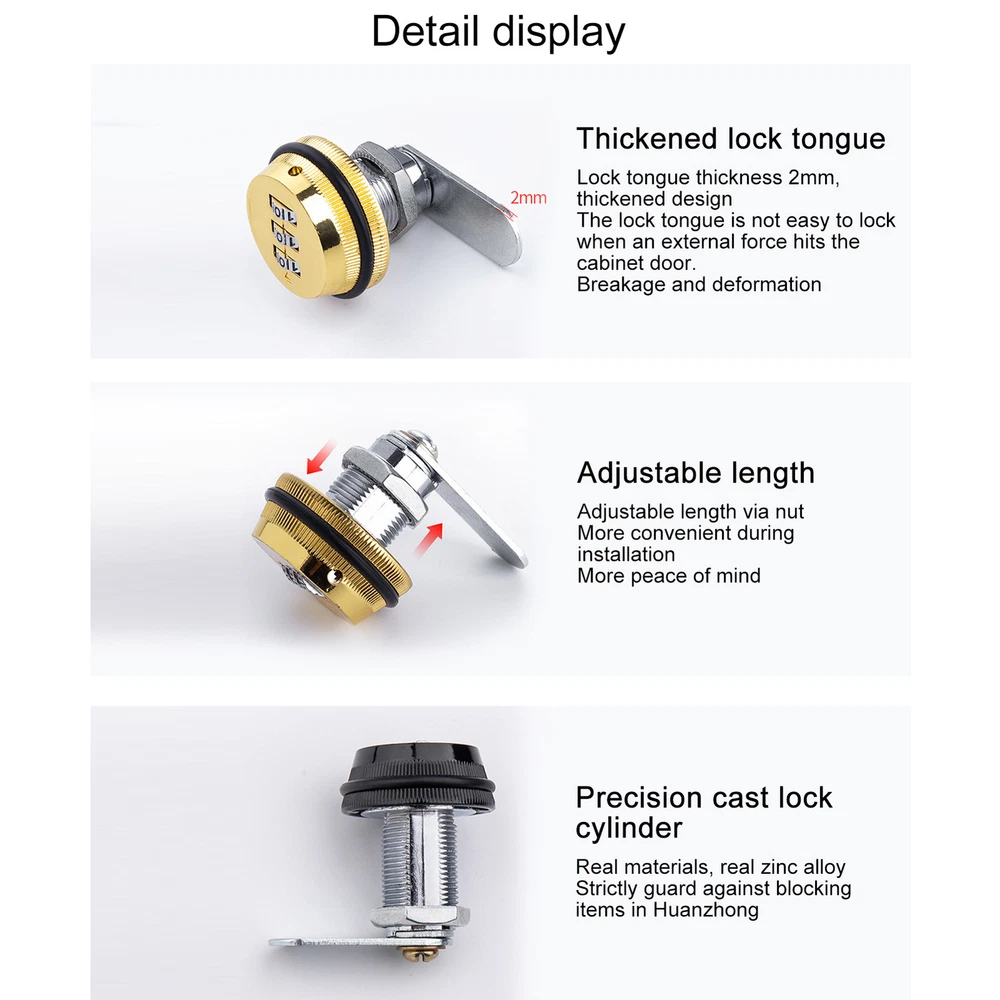 Cabinet Password Locks 3 Digit Code Anti-theft Combination Security Lock Home Effortless Security: Set the three-digit passwords series and unlock with ease by rotating the lock tongue. Our passwords lock provides top-notch security without a key required. Enjoy hassle-free security and user convenience, anytime, anywhere. Enhanced Security: Our passwords lock boasts increased lock stability and resistant to prying thanks to its tongue design working closely with the lock body. With the turn tongue lock, external damage is combated effectively, providing unparalleled security for your valuables. Rugged Protection: Made of anti-rust zinc alloy material, these passwords locks are wear-resistant and can withstand harsh environments. They ensure the safety and durability of your belongings. Stylishly Secure: Our passwords lock provides enhanced security with its durable and sturdy design. The sleek black and white appearance adds sophistication to your security measures while the clear numbers make it easy to enter your passwords and keep your belongings safe. Wide Application: Our innovative passwords lock provides unbeatable security to keep your belongings safe from potential theft. set your combination code and enjoy the convenience of changing it anytime you want. Great for wide applications at home, business, warehouse, garage, and tool boxes. Secure your belongings with our combination lock password. three-digit password setting, you can ensure the safety and durability of your locks. Its simple and stylish appearance design looks great, and it has a wide range of uses. Perfect for home, school, or gym lockers. Specification: Name: Password turn tongue lock Material: zinc alloy + steel Weight: (approx.)0.12kg/piece Opening: diameter (approx.) 1.9cm/0.75 inches Door panel: Thickness (approx.)2cm/0.79 inches, (approx.)3cm/1.18 inches Applicable: Mailbox/Electricity Box/File Cabinet/Locker, etc. Packing List: 1pc * Password Lock 1pc * lock buckle 1pc * Limiting plate 1pc * Code modification tool 2pcs * Screws Note: Due to different lighting and screen settings, the item color may be slightly different from the picture. Due to different manual measurements, please allow a 1-2cm difference in size. Payment should be completed within 2 days after auction closed, or unpaid dispute will be filed for an closing auction. An unpaid case will be filled after 4 days ● We strive for 100% customer satisfaction ! ● Positive Feedback is very important to us. ● We hope that you contact us immediately BEFORE you give us neutral or negative feedback, so that we can satisfactorily address your concerns. ● We promise to offer the lowest price and high quality produce. Our working time: Monday to Friday (9:00 am to 18:00pm)(Beijing Time) Saturday (9:00 am to 12:00am),except International Holiday. Dear buyers : ● Welcome to my store ! ● Your satisfaction is our top goal,we appreciate your patronizing. ● If you have any questions, please contact us before leave negative or neutral feedback, we will try our best to solve the issue to your satisfaction, thanks ! ● If you are satisfied with our service, please rate the details of the transaction (Detailed Seller Ratings) on eBay. ● Please always talk to us via ebay Message . ● We appreciate your business and look forward to growing our e-Bay sales with satisfied customers.