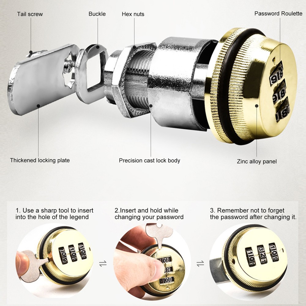 Cabinet Password Locks | 3 Digit Code Anti-theft Combination Security Lock Home Product Description Effortless Security: Set the three-digit passwords series and unlock with ease by rotating the lock tongue. Our passwords lock provides top-notch security without a key required. Enjoy hassle-free security and user convenience, anytime, anywhere. Enhanced Security: Our passwords lock boasts increased lock stability and resistant to prying thanks to its tongue design working closely with the lock body. With the turn tongue lock, external damage is combated effectively, providing unparalleled security for your valuables. Rugged Protection: Made of anti-rust zinc alloy material, these passwords locks are wear-resistant and can withstand harsh environments. They ensure the safety and durability of your belongings. Stylishly Secure: Our passwords lock provides enhanced security with its durable and sturdy design. The sleek black and white appearance adds sophistication to your security measures while the clear numbers make it easy to enter your passwords and keep your belongings safe. Wide Application: Our innovative passwords lock provides unbeatable security to keep your belongings safe from potential theft. set your combination code and enjoy the convenience of changing it anytime you want. Great for wide applications at home, business, warehouse, garage, and tool boxes. Secure your belongings with our combination lock password. three-digit password setting, you can ensure the safety and durability of your locks. Its simple and stylish appearance design looks great, and it has a wide range of uses. Perfect for home, school, or gym lockers. Specification: Name: Password turn tongue lock Material: zinc alloy + steel Weight: (approx.)0.12kg/piece Opening: diameter (approx.) 1.9cm/0.75 inches Door panel: Thickness (approx.)2cm/0.79 inches, (approx.)3cm/1.18 inches Applicable: Mailbox/Electricity Box/File Cabinet/Locker, etc. Packing List: 1pc * Password Lock 1pc * lock buckle 1pc * Limiting plate 1pc * Code modification tool 2pcs * Screws Note: Due to different lighting and screen settings, the item color may be slightly different from the picture. Due to different manual measurements, please allow a 1-2cm difference in size. Payment 1.PayPal is a preferred Payment method. 2.You can make a Credit payment via Paypal.Paypal will let you use MasterCard,Visa to pay. 3.Payment should be completed within 3 days after auction closed, or unpaid dispute will be filed for an closing auction.An unpaid case will be filled after 4 days. Delivery details 1. We ship to many countries. 2. Delivery Time: Ship from China via Speedpak to US (takes 8-12 days) Ship from China via others shipping method to other countries (takes 15-60 days) 3. If you want to choose another address, please leave us a message on ebay.Please check your shipping address carefully before checkout,it can't be changed if order completed. Seriously promise:Refund or resend will be offered if item still not arrive in 7-10 business days. Just send us an email,we will give you a satisfied solution as soon as possible. Return policy 1.All item comes with Basic 3 Months Sellers Warranty, if item defective in 3 months,We will offer replacement without extra charger (including shipping fee) After we receive the defective item. If item Defective after 3 Month, Buyers can still send it back, We will contact suppliers or Manufactory for Warranty. Buyers Might Need pay the Shipping fee For resend the replaced item. 2.If item DOA(Dead of Arrival), Buyers can return it in 30 Days, we will replace it with new item after we receive DOA item. Please Contact us Before you sent the item back. 3.All item can be returned for exchange only. The buyer has responsibility for all return shipping including DOA or defective return. About Feedback When you receive the item and satisfied with the product, please leave positive feedback and 5 scores DSR. We will leave a 5 Scores DSR feedback for you. If, for any reason you are not satisfied with your purchase, please contact via Ebay Message and we will do our best to resolve it. Please don't leave neutral or negative feedback without any communition with .