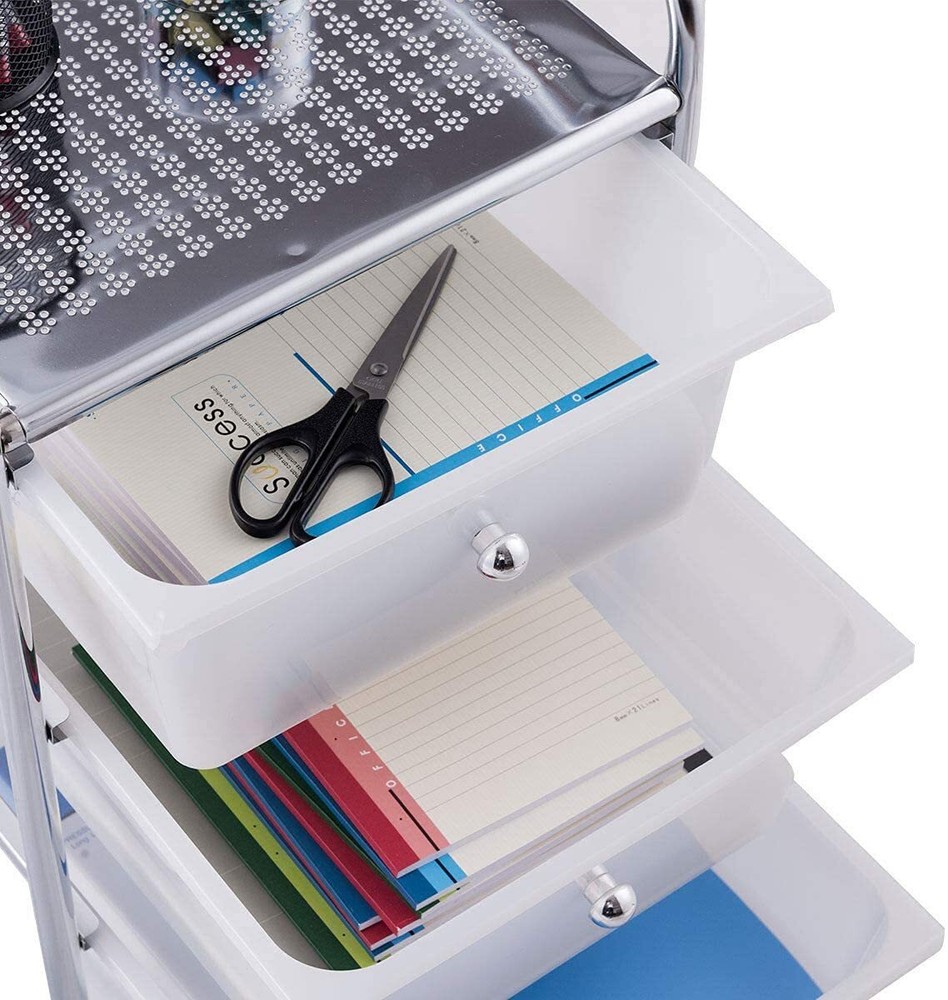 Description: An excellent storage cart for home, office, classroom. With steel frame and chrome-plated surface, this drawer storage cart features sturdy and durable structure, bringing you long-lasting enjoy. Solid metal top board offers 16.5 lbs load. Drawers made of PP can also support 4 lbs. Each drawer is equipped with a round knob for easy opening. With both closed and open storage space, you can put your items in order. You can organize different categories of items and put them in the drawer and you can also put them on the top surface to keep your room in order. Lightweight body and 360-degree wheels make it easy to move the drawer storage around. It has a small body for corner and small room. It takes minimal space so that you can have more space to do other things. It is suitable for storing files, paper, tools and so on. You can put it in your home, kitchen, bathroom, office and classroom. With detailed instructions, it is easy to assemble. Features: Steel frame, chrome-plated surface, PP drawer, metal board, sturdy & durable Large weight capacity, top board: 16.5 lbs, each drawer: 4 lbs Spacious storage space: top board & 3 drawers Drawers help organize your items, make your room clean Mobile design: 4 smooth wheels with 360-degree rotation Lightweight body, easy to move Small body, save space, suitable for corner Good to files, tools, paper Easy to assembleSpecifications: Material: Steel & PP Overall dimension: 12.5" x 14" x 24"(W x D x H) Steel panel size: 13.7" x 11.3"(L x W) Drawer size: 11" x 14" x 5"(W x L x D) Weight capacity of the steel panel: 16.5lb Weight capacity of single drawer: 4.4lb Net weight: 5lbs Package Includes: 1&nb 🗄️〖Spacious Storage Space〗Three deep drawers of the drawer storage cart can help you your items. You can organize your different categories of things and put them in different drawers to make everything in order. Small round handle on each drawer is convenient for you to pull out or push in drawers. 🗄️〖Excellent Materia & Durable〗The frame of this drawer storage cart is made of steel. It has a chrome-plated surface, which makes it durable and stable. The drawer is made of high-quality PP, without harm and smell. Owing to a solid metal board and sturdy structure, the top surface of the drawer storage cart can support up to 16.5 lbs, each drawer 4 lbs. 🗄️〖4 Wheels & Lightweight〗Unlike heavy storage containers which cannot be easily moved, the drawer storage cart is lightweight and equipped with four wheels which rotate smoothly for 360 degrees. With this mobile design, you can simply move it everywhere you need. Moreover, 2 wheels can be locked, bringing maneuverability and stability. 🗄️〖Small Size for Saving Space〗The drawer storage cart has a small body, making it simple to in any room and roll in any corner of the house. It only takes up minimal space to do the storage, organize your items and keep your room neat. 🗄️〖Easy Assembly & Dimension〗All accessories and assembly tools are included in the package. the step-by-step instructions and you will finish this assembly easily. It takes individual about 20 minutes to assemble. Product Dimension: 12.5”L x 14”W x 24”H. Drawer Dimension: 11”L x 14”W x 5”H.