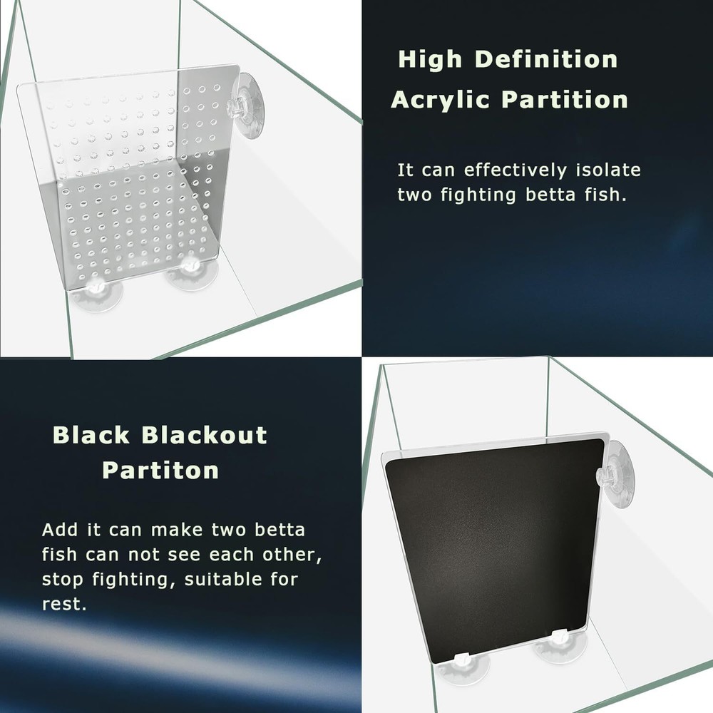 3 Gallon 12.6" L Fish Nano Glass Aquarium, with Separator Plate for Betta, Multi-Functional Square Fish Tank with Filter, LED Light, White 4mm Glass Item Description About this item 🐠The Perfect Aquarium Betta Tank: A 3-gallon nano glass aquarium that's an absolute gem for aquarium enthusiasts! This rectangular beauty is tailor-made for Betta fish, guppies, angelfish, and other small, captivating aquatic companions. Equipped with LED lights, a hanging filter, and lids, we've even thrown in specialized dividers and shields—perfect for hosting two Betta fish, letting them swim with passion and rest in style. 🐙Sleek and Simple Design: Our tank measures 12.6 inches in length, 6.3 inches in width, and stands 8.67 inches tall, boasting crystal-clear 4mm-thick glass. The back glass is chic black, and the bottom features a black EVA cushion, giving the tank an inherently sophisticated black look—perfect for your American-style home. We've also included a custom lid to prevent any fishy escape attempts. 🐙The parameter of the filter: AC110V/60Hz, 2.5W, 250L/H, the flow is adjustable. The filter is hanging back, which allows for more room in the tank. Remember, fill the filter with water before every start-up! 🐟Full-spectrum Aquarium Lights: Let there be light! Our tank features a brilliant clip-on lamp that illuminates your underwater world with a dazzling glow. Operating at AC110~240v, 13W, 780 Lumen. Full-spectrum aquarium lights are suitable for aquatic plant growth, this LED fixture promises a radiant view of your aquatic buddies. 🐳The Perfect Gift: This compact fish tank comes in a stylish packaging, making it the ideal gift for your child, colleague, friend, or family member on special occasions or birthdays. As you know, aquariums are delicate items, and mishaps can occur during transit due to the long shipping times. If you discover any damage, contact us promptly, and we'll arrange a refund or replacement for you. › See more product details Payment We accept payment only through PAYPAL Shipping We ship products worldwide through standard express courier service, it will reach within 7 to 10 days to abroad buyers, we ship the product after recieved clear payment and give full information about shipment to the buyer Return We accept product return within 7 to 21 days from delivery date but product should be in original position and not in damaged condition,the return shipping charges will be buyer responsibility