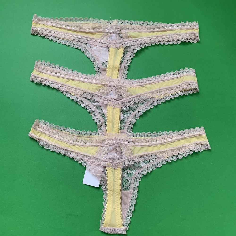 3 Hers By Herman Lace Thongs Yellow /Beige Floral Sz MediumNew