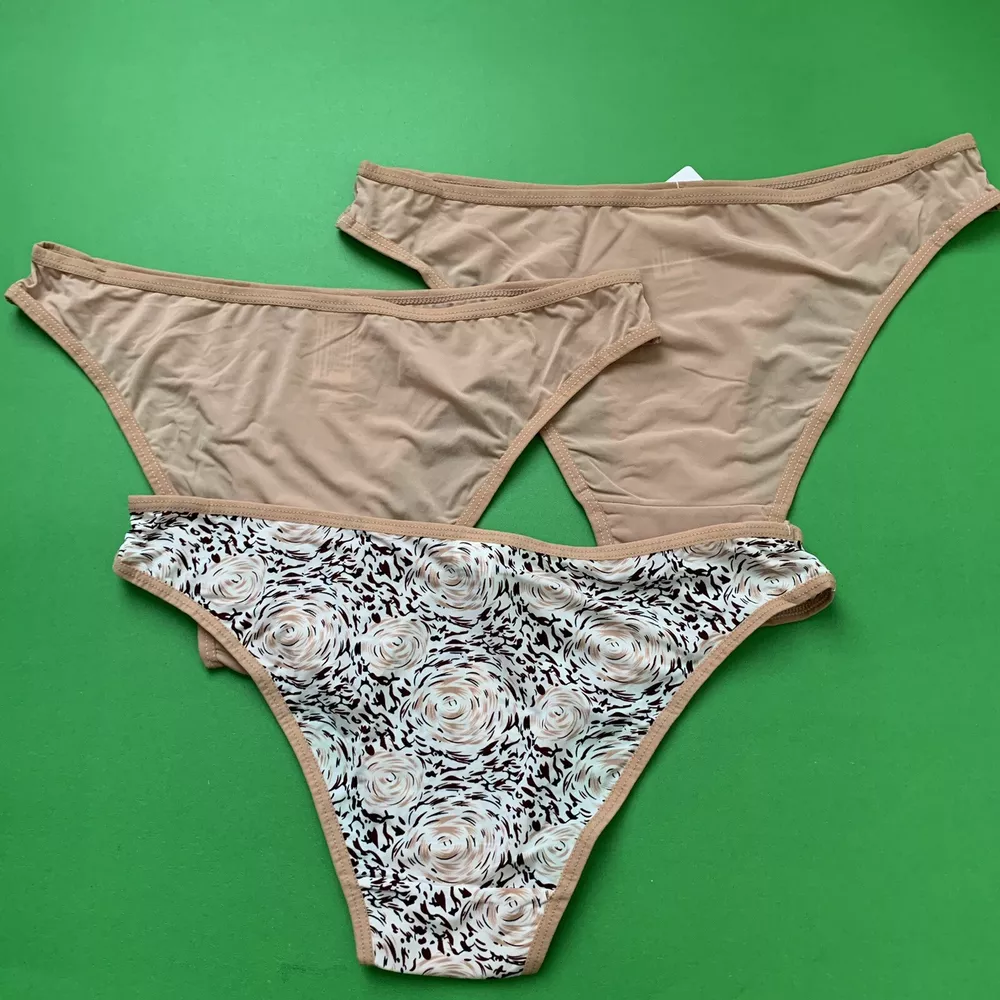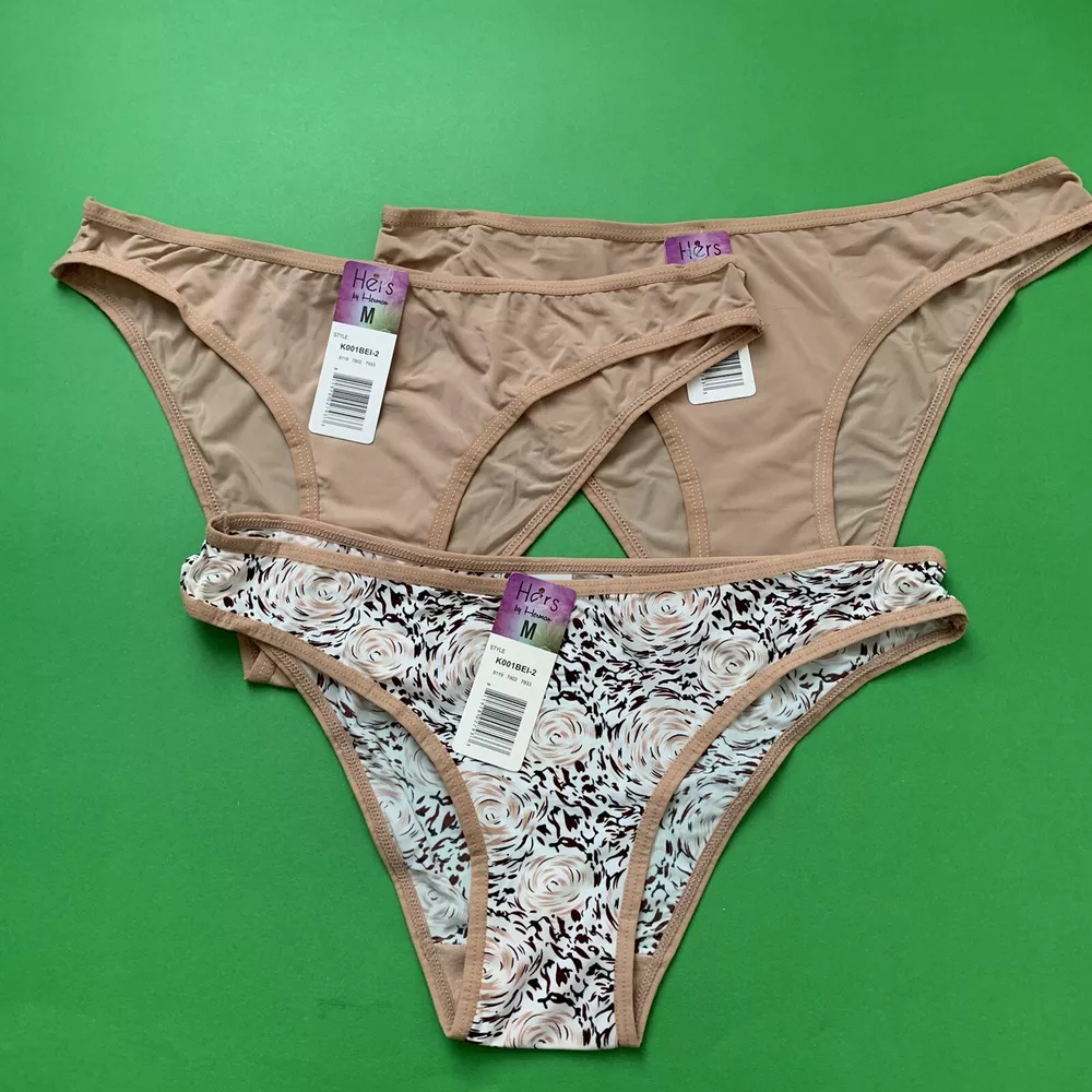 3 Hers By Herman NWT bikini Panties Solid Tan and Floral Print Size M