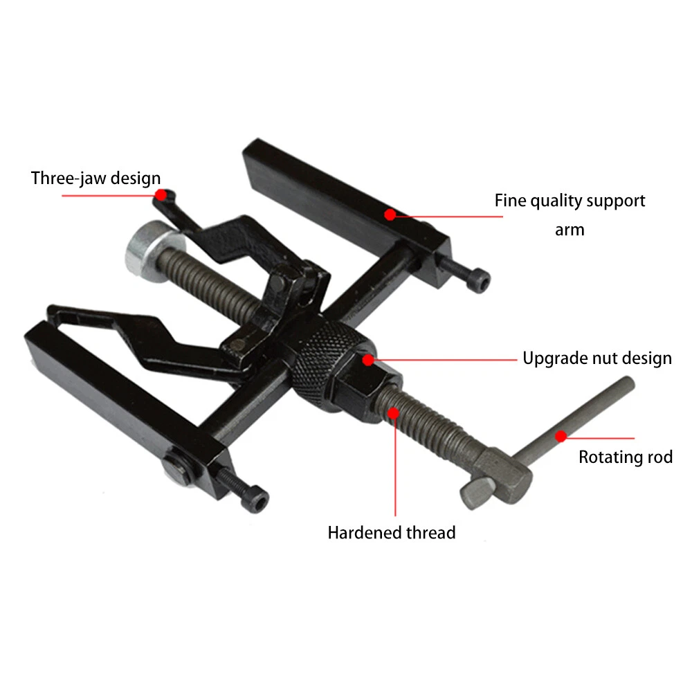 Features 1、Structural design,gently turning a small wrench can produce a strong pull force. 2、The 3 jaw gear extractor made of high quality alloy,with high hardness and good performance. 3、Tough and durable,it has a long service life that you can used it for a long time. 4、Easy to operate and install,you can install it within in a few minutes,very convenient. 5、It can used for removing guide bearings, pump bearings, brushes. Specification Description: Using high quality 45 carbon steel, special heat treatment for removing mechanical equipment combination of rod brake device and other parts of the ball joint. Specifications: Material: 45 Carbon Steel Color: black Size: 200x135mm Wire rod length: 175mm Bar length: 125mm Arm length: 86mm Features: Removes bearings, pump bearings, brushings Removes all sleeve-type bearings with 17-38mm inside diameter Structure design, gently turning the small wrench can produce a strong pull force The overall use of 45 carbon steel, high hardness, good toughness, strong and durable Package include: 1x 3-Jaw Inner Bearing Puller Tool