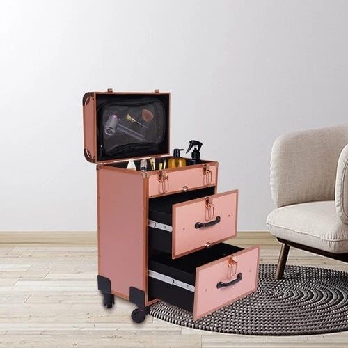 This rolling makeup case is a game-changer! The sturdy aluminum frame and fireproof panels keep everything secure, while the three spacious layers hold all my cosmetics neatly. The smooth-rolling wheels and retractable handle make it super portable—perfect for pros or home use. Love the sleek gold finish—it looks professional yet stylish. Highly recommend for anyone who needs organized, on-the-go storage!