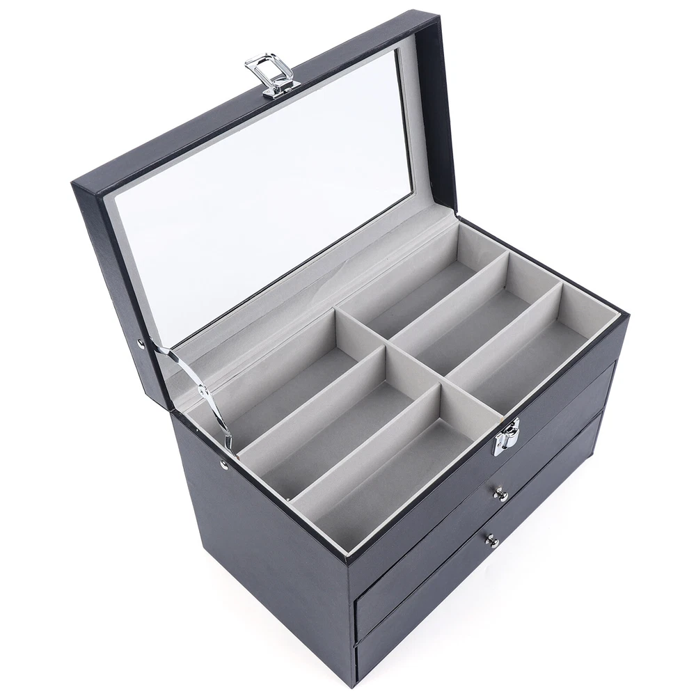 Product Features: - High quality PU leather jewelry box with attractive appearance,simple structure,fine workmanship and sturdy construction - Metal Lock,Black High Grade PU Leather surface,Three levels,First and Second level includes 12 separate compartments to keep your sunglasses and glasses organized,Third level includes 12 removable velvet pillows - It's divided into plenty of unit space which are easy to clean and maintain,It will keep your watches and eyeglasses & sunglasses securely - This elegant jewelry case allows you to show your glasses and watch and other jewelry while protecting them away from dust,fingerprints,scratches and thieves 3 Layers Watch Display Box Jewelry Ring Organizer Case Sunglasses Storage Holder **Description of yybshop02** Product Features: - High quality PU leather jewelry box with attractive appearance,simple structure,fine workmanship and sturdy construction - Metal Lock,Black High Grade PU Leather surface,Three levels,First and Second level includes 12 separate compartments to keep your sunglasses and glasses organized,Third level includes 12 removable velvet pillows - It's divided into plenty of unit space which are easy to clean and maintain,It will keep your watches and eyeglasses & sunglasses securely - This elegant jewelry case allows you to show your glasses and watch and other jewelry while protecting them away from dust,fingerprints,scratches and thieves - Clear glass top gives you a open view and you can find your favorite treasure in seconds with this unique jewelry box.Perfect for home and business use,and a wonderful gift idea. Product Specification: - Material: High Grade PU Leather,Medium Density Fiberboard - Window: Glass - Color: Black - Product Dimensions (L x W x H): 13.38" x 7.48" x 8.66" (34 x 19 x 22 cm) First Tier: - Slot Size (L x W x H): 6.2" x 2.3" x 1.6" (15.7 x 5.8 x 4.1 cm) Second Tier: - Slot Size (L x W x H): 6.2" x 2.3" x 1.6" (15.7 x 5.8 x 4.1 cm) Third Tier: - Watch Slot Size (L x W x H): 3.1" x1.8" x 1.5" (8 x 4.5 x 3.8 cm); Pillow Size (L x W): 2.7" x 1.8" (7 x 4.5 cm) Packaging List: - 1 x Watch Display box - 12 x Removable Pillows **Description of yybshop02** Payment Delivery details Terms of sales About us Contact us Payment We accept ebay payment 。 Fees such as import duties, taxes are not included in the item price or shipping costs. These charges are the buyer's responsibility. Delivery details Shipping: 2-9 working days to: USA Terms of sales We maintain high standards of excellence and strive for hundred percent customer satisfaction. Feedback is very important to us. We hope that you contact us immediately before you give neutral or negative feedback, so that we can address your concerns. It is impossible to address issues if we do not know about them! About us Your satis faction is our ultimate goal. We work hard to earn your trust and future business. Our certified technicians have tested each item before shipping. The unit comes with 1 year limited warranty on all manufacturing defects. a) If you receive a defective item, you may return it or ask for a discount. Please contact us within 14 days after you receive the package. b) What you returned must be intact and in its original packaging as re? u. Customer is responsible for shipping costs of the returned item. c) We will cover the cost of shipping back t with the shipping rate indicated in the registration page. We will send you a new unit or refund the full payment you paid. Thank you. Contact us Business Hour Business Hour: Monday To Friday: 8:30 AM to 5:00 PM (Beijing China time) Due to time zones, our reply to your questions may not be immediately. But within above working time, we will reply your email within 24 hours. If it's non-workdays, please kindly be patient and wait till Monday. Please contact us with ebay message. Please feel free to contact us if you have any questions. Monday To Friday: 8:30 AM to 5:00 PM (Beijing China time) Due to time zones, our reply to your questions may not be immediately. But within above working time, we will reply your email within 24 hours. If it's non-workdays, please kindly be patient and wait till Monday. Please contact us with ebay message. Please feel free to contact us if you have any questions. Features1 stable performance,Durable Current Rating Does Not Apply MPN Does Not Apply EAN Does Not Apply Brand Unbranded modified item no ISBN Does Not Apply OE/OEM Part Number Does not apply MPN ( MPN ) n/a UPC Does Not Apply Material High Grade PU Leather,Medium Density Fiberboard Size 13.38" x 7.48" x 8.66" (34 x 19 x 22 cm) Type BOX Color Black Capacity More than 12 Watches