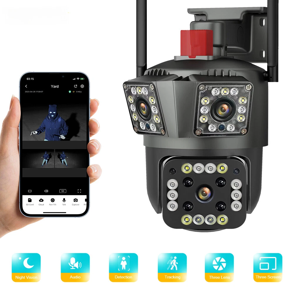 3 Lens Camara De Seguridad Para Casa Exterior Vision Nocturna Camaras Vigilancia