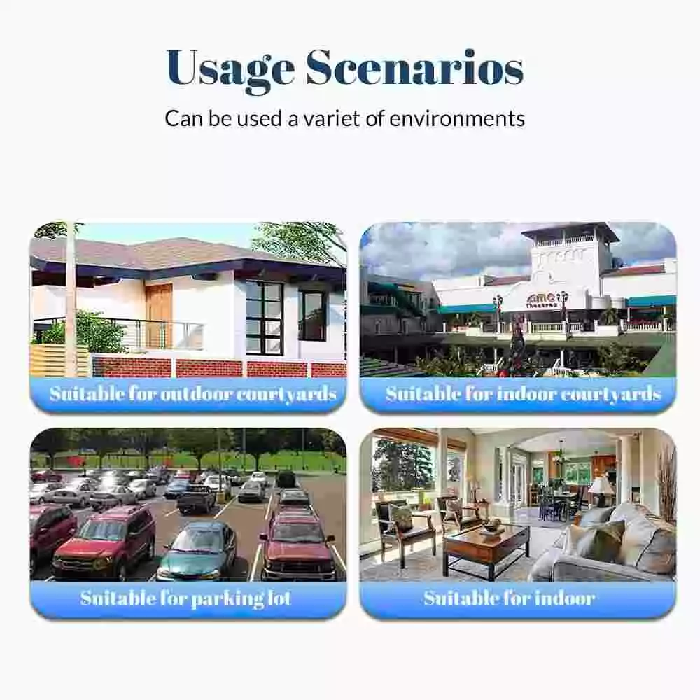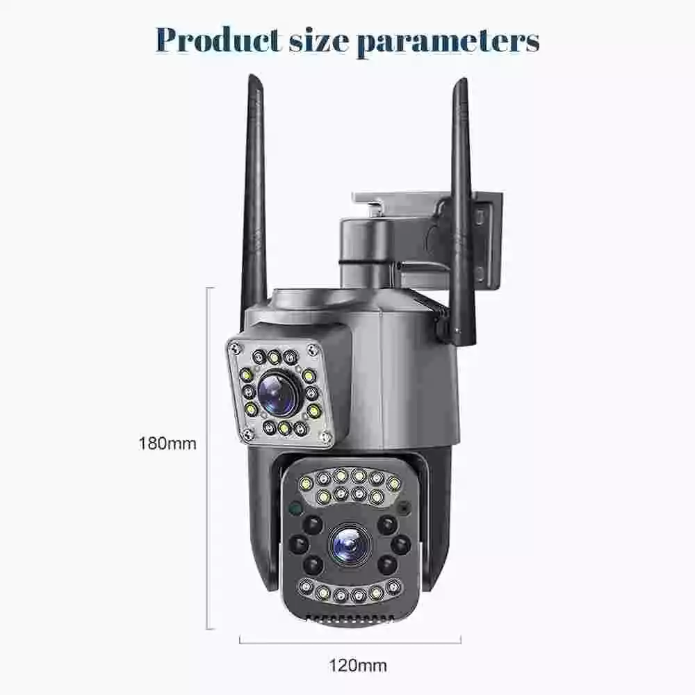 9MP Camera Product specifications: Sensor: 3MP+3MP+3MP Lens: 3.6mm Infrared light: upper infrared 12 lights, white 10 lights, lower infrared 10 lights, white 4 lights Low illumination: 0.01Lux Effective distance: 8-10 meters Switch: automatic Termination (s): N/A Thunder sensor: None 2. Video imaging Lens pixel: 3 million+3 million+3 million Compression format: H.264 High profile Effective resolution: 1920x1080P Visual angle: 105 degree Frame rate: 1080P 18FPS Mirror flip function: Yes Visual mode switching: ultra clear&high-definition&automatic 3. Audio Voice communication: two-way intercom Audio input: built-in microphone Audio output: built-in speaker 4. Network mode Network interface: wireless (WiFi) or 4G, without network port Network protocols: IP, TCP, DHCP WPS Domain name resolution: Yes Port transmission: P2P Platform: Dual Stream DHCP: Automatic 5. Wireless Output power: 802.11g: 10.95dBm (0.012w) 802.11b: 10.74dBm (0.012w) 802.11nHT40: 11.58dBm (0.014w) 802.11nHT20: 11.07dBm (0.013w) Frequency: 2412-2462MHZ 6. Antenna Antenna: omnidirectional antenna Antenna gain: 3dBi Network security: WEP, WPA-PSK, WPA2-PSK FCC identification number: 2APD7-R9820 Bandwidth: 40000 khz Modulation: DSSS, OFDM 7. Pan tilt Pan tilt angle: horizontal left and right: 355 degrees, vertical up and down: 110 degrees“ 8. Control Management Remote control: App remote Multi user management: Share up to 5 users Split screen view: up to 4 split screens display Mobile applications: IOS&Android 9. Alarm and notification methods Mobile detection: yes Information push method: Mobile phone automatic push (1 image, 3 second video) Information push interval: 5 seconds APP name: IPC360 home Storage method: Amazon Cloud (overseas) Alibaba Cloud (mainland)/TF Dual Lens Camera Features : 1. 2K 4MP (2MP+2MP) HD Dual Lens Network IP Camera For Indoor&Outdoor 2. Dual light source design, built-in 8 pcs infrared light + 8 pcs white light, night vision infrared and night vision full color can be set; 3. Pan&Tilt: horizontal 0~350 degrees, vertical 0~90 degrees; 4. 2.4G WIFI + RJ45 network port for Internet access; 5. power supply DC 12V/2A 6. Dual Design, Support SD / TF storage and cloud storage; 7. Two-way voice intercom, two-way video synchronous recording and playback 8. Humanoid detection/vehicle detection/pet detection/other detection 9. Automatic tracking/movement alarm, alarm output sound and light linkage; 10. AI intelligent algorithm to achieve video 3D positioning and continuous tracking of target alarms; 11. Support Android/IOS APP remote management (V380 Pro). Real Two Way Audio Notice: APP: V380 PRO does not support 10XZOOM 3 Lens Camera Ensure your home is protected from every angle with our cutting-edge surveillance technology. The Double 3MP WiFi Camera features not one, but two lenses and three imaging screens, providing a 360-degree view with no blind spots. two of these lenses serving as decorative elements with the LED lights working properly.Keep a watchful eye on every corner and enjoy the peace of mind that comes with comprehensive security. VTS01 3 Lens Camera 3 screens shows on the V380 app Three images can be viewed simultaneously, and each image can be individually enlarged. Real time alerts Set up monitoring areas in advance, conduct actual testing, and promptly push alarm information. IP66 Waterproof / Dustproof The camera is equipped with IP66 case , which is waterproof, sun-proof and dust-proof. It is suitable for any environment. Clear Two Way Audio Built-in microphone and speaker / Customized new speakers with loud volume; You could talk to anyone nears the camera ( Warn someone to leave your house ). Advanced H.265 Video Compression H.265 (HEVC) doubles the coding efficiency compared with its predecessor H.264. H.265 video saves around 50% of the bit rate at the same quality of coding.H.265 only need less bandwidth,faster loading speed,more smooth video,Lower bite rate,higher image quality! 10X Zoom(Both 3 cameras support zoom) you can switch from 1X to 10X zoom instantly;it can fast zoom in or zoom out without lag;watch far and near images Simultaneously through Picture in Picture,don't miss a detail. Full Color Night Vision: When the white LED light is on, the camera will display colorful vision at night, and there are three night modes for you to choose. Ai Human Detect Alert Quickly finds human targets and immediately sends a notification to your phone, letting you see what happens anywhere. It only detects the human shape and will not trigger falsely for objects such as cars and trees. PTZ Control by APP Rotates 355° Horizontally and 90° Vertically.You can control it in the APP directly whenever you want and wherever you are.