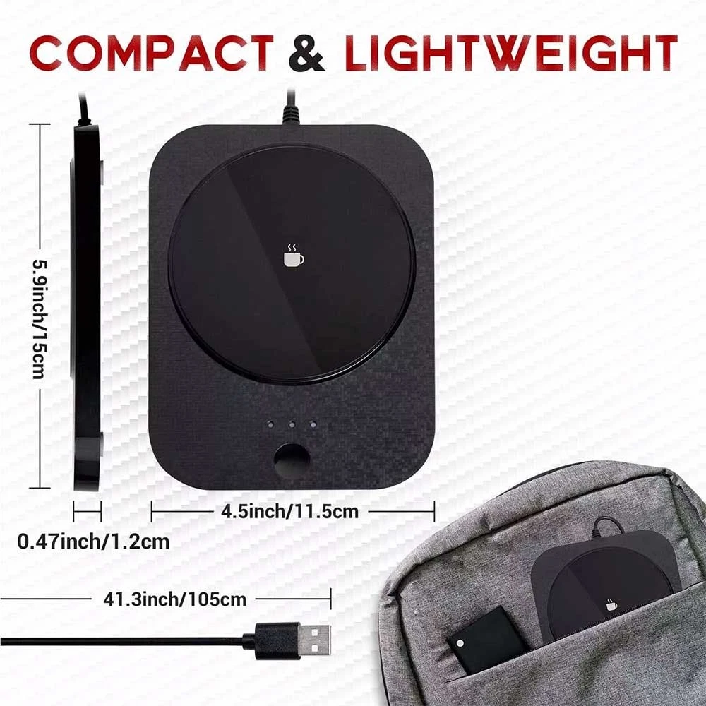 Product Description Description: 1. Easy to Use: Simply plug the cord, tap the switch and put your mug on. All set. Now the mug warmer will keep your drink warm to the last drop. This coffee warmer not only can slow down the cooling speed of hot beverage 2. Fast Heating: Just in 5 Minutes your Coffee/Water/Milk is going to be warm, 3. Smart Constant Temperature 131 F: Your coffee is always going to be Warm, The Ultimate coffee mug warmer bring to your tea/Milk/water constant temperature for 8 hours. 4. Waterproof Panel: We offer a water resistant product, most of regular warmers are not resistant and can be damaged easily. 5. USB- Charger: You can use this product conected with your Laptop or power adapter Features: 1. Simply plug the cord, tap the switch and put your mug on. 2. Just in 5 Minutes your coffee/water/milk is going to be warm, constant 55℃ for 8 hours. Three levels of adjustable temperature, the first level is 50°C, the second level is 55°C, and the third level is 60°C. 3. Can be connected to mobile power, laptop, convenient for outdoor use. 4. Small size, easy to carry. 5. With automatic power-off protection, if there is no operation for 8 hours, it will automatically power off and stop heating. 6. Waterproof tempered glass panel to prevent leakage. With non-slip silicone pad on the bottom, it can be placed firmly on the table. Specification: Colour: Black,White Material: ABS,TemperedGlass Rated Power: 15W USB: DC5V-1A/2A Touch Switch: Three-Speed Temperature Adjustment (50°C, 55°C, 60°C) Package Included: 1x Mini Cup Warmer 1x USB Cable Shipping Returns Contact Us Feedback 1.We will ship to your eBay address. Please make sure your eBay address is correct before you pay. 2. We will ship out your order from warehouse within 3 business days after receiving your verified payment (Excluding Weekends and Public Holidays)! 1.If you are not satisfied with our products. Please kindly contact us before you open the return request. We provides 30 days Money Back or Exchangement Warranty. 2.Please Kindly contact us for the RMA No.and address before returning the item back. 1. Please contact us if you are not satisfied with the item after receive it. Just contact us using the " Ask the seller a question" link on eBay. 2.All replies will be sent to your email, if you don't get response within 1-2 business days, pls check your My messages' in case your email provider has an overly-aggressive spam filterblocking eBay's emails. Please email us AGAIN.Thanks 1. Feedback will be left automatically after we receive your feedback. 2. Please contact us before leaving a neutral or negative feedback. We would try our best to help you solve the problem. Please allow us to reply your email within 24 hours. 3.We will provide the service as best as we can, cause the feedback and is what we are striving for. Please email me through "My Messages" or "Contact seller" if you have any question about our listings or your purchasing. Shipping 1.We will ship to your eBay address. Please make sure your eBay address is correct before you pay. 2. We will ship out your order from warehouse within 3 business days after receiving your verified payment (Excluding Weekends and Public Holidays)! Returns 1.If you are not satisfied with our products. Please kindly contact us before you open the return request. We provides 30 days Money Back or Exchangement Warranty. 2.Please Kindly contact us for the RMA No.and address before returning the item back. Contact Us 1. Please contact us if you are not satisfied with the item after receive it. Just contact us using the " Ask the seller a question" link on eBay. 2.All replies will be sent to your email, if you don't get response within 1-2 business days, pls check your My messages' in case your email provider has an overly-aggressive spam filterblocking eBay's emails. Please email us AGAIN.Thanks Feedback 1. Feedback will be left automatically after we receive your feedback. 2. Please contact us before leaving a neutral or negative feedback. We would try our best to help you solve the problem. Please allow us to reply your email within 24 hours. 3.We will provide the service as best as we can, cause the feedback and is what we are striving for. Please email me through "My Messages" or "Contact seller" if you have any question about our listings or your purchasing. You may also like 3000W AC 220V Stainless Steel Heating Element Electrical Water Heater Tube 1"BSP 31.28 USD Free shipping New Shaking Wooden Man Figure Decoration with 12 Magnetic Expressions 18.41 USD Free shipping 2000W AC 220V Stainless Steel Heating Element Electrical Water Heater Tube 1"BSP 26.44 USD Free shipping 128Hz Tuning Fork+Hammer Kit Musical Instrument Vibration Sound Therapy Healing 15.91 USD Free shipping Dipping Sauce Plate and Holder Set, 6Pcs Plastic Dipping Dish with Storage Box 16.24 USD Free shipping Universal Anti-Slip Aluminum Alloy Sleeve Cover for Car Parking Handbrake 20.01 USD Free shipping Clip-On Chromatic Tuner Ideal for Electric Guitars Acoustic Guitars Bass Violins 17.5 USD Free shipping GT/FG/PR Model Electric Knotter Fishing Line Knotting Machine 21.09 USD Free shipping 12V Motorcycle SAE to USB Dual Port Charger Voltmeter Cable Adapter Waterproof 25.49 USD Free shipping 12V DC Electric Water Pump Faucet with Switch - for Boat, Caravan, Motorhome, RV 34.49 USD Free shipping Undetectable Mechanical Mouse Mover with Auto-Click & Timer 28.9 USD Free shipping Personal Panic Defence Alarm For Jogger Child Elderly Very Loud 120 - 130 db 17.05 USD Free shipping Foot Dimmer Switch Full Range Inline Slide Control for Floor Lamp / CFL light 25.13 USD Free shipping Military Retro PU-Leather Strap Watch Men Punk Quartz Cuff Watch Wristwatch 24.01 USD Free shipping Heavy Duty Door Gate Closer Spring Fire Rated Outdoor Automatic Surface Mount 21.31 USD Free shipping Professional Latex Paint Edger Brushes Wall Ceiling Corner Painting Brush Hemper 16.5 USD Free shipping 2PC Led Eyes for Ca