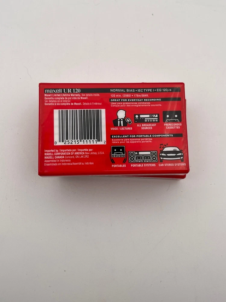 This listing is for a set of three Maxell UR 120 minutes blank cassette tapes. The tapes are ideal for recording your favorite music, movies, or any other audio content. The cassettes come in a standard jewel case and have a capacity of 120 MB, which is more than enough to store your precious memories. The Maxell UR 120 model is known for its long-run storage and recordable features, making it a perfect choice for anyone who wants to preserve their audio collection. Whether you're a music enthusiast or a professional videographer, these cassettes are an excellent addition to your equipment. Get your hands on these blank tapes today and start recording your memories!