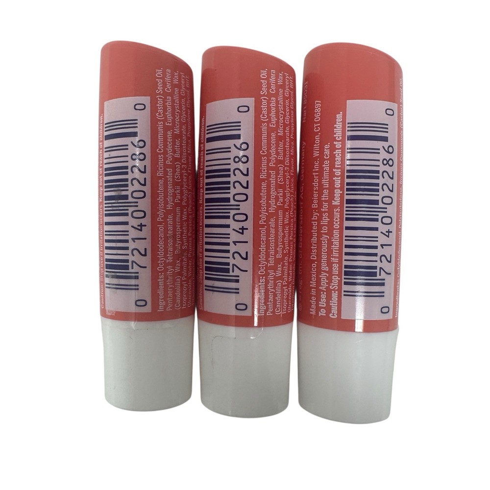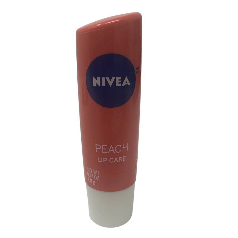 You're purchasing a lot of 3 brand-new, factory-sealed NIVEA Peach Lip Care tubes (0.17 oz / 4.8g each). This version has been discontinued and is becoming increasingly hard to find. The balm is enriched with Shea Butter, Castor Seed Oil, and Peach Juice Extract to provide smooth hydration and a light peachy scent. Ideal for collectors, resellers, or longtime fans of this discontinued formula. Each tube is clearly marked with the original UPC: 072140022860 , and was made by Beiersdorf AG, Germany . Features: Lot of 3 lip balms (0.17 oz / 4.8g each) Discontinued NIVEA Peach Lip Care formula Enriched with Shea Butter & Peach Juice Sealed tubes, never opened or used Made in Mexico / Distributed by Beiersdorf Inc. UPC: 072140022860 Ingredients include: Castor Seed Oil, Candelilla Wax, Shea Butter, Microcrystalline Wax, Peach Juice, and more (see last photo) Shipping & Returns: Free US Shipping 30 day returns (must be returned in original, sealed condition) Price: $13.99