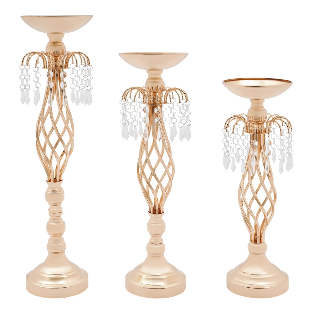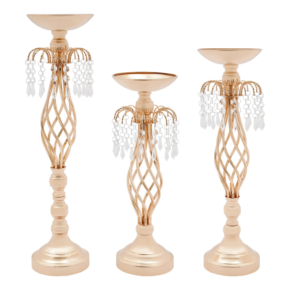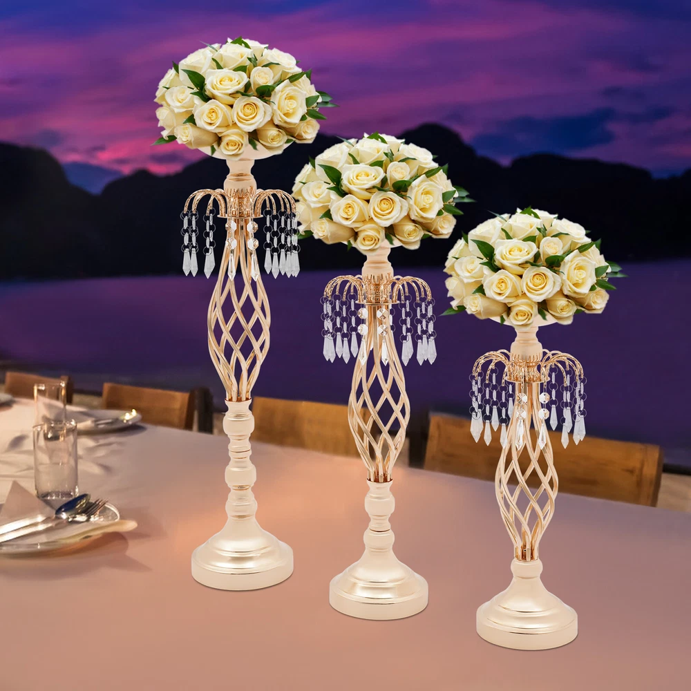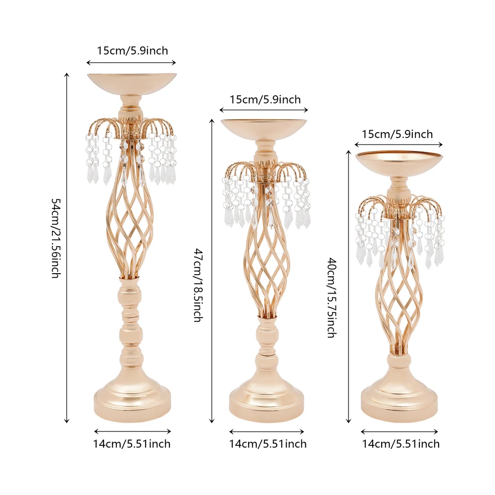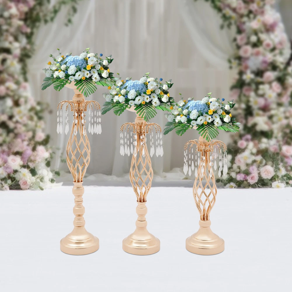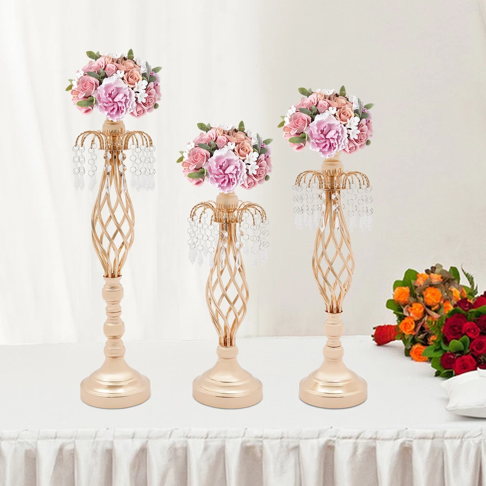 Specification Material: Iron, Acrylic Process: Electroplated Color: Gold Assembly Required: Yes Mount Type: Floor Standing, Countertop Mount Style: Modern Number of Items: 3 Each Top Diameter: 15cm/5.91in Each Base Diameter: 14cm/5.51in Product Height(From Large to Small): 54cm/21.26in, 47cm/18.5in, 40cm/15.75in Package Size: 31*31*25cm/12.2*12.2*9.84in Gross Weight: 3.4kg/7.5lbs Net Weight: 2.8kg/6.17lbs Package Included 3* Wedding Flower Stands Other Accessories for Assembly 3 PCS Electroplated Flower Stands for Wedding Wedding Gold Flower Stand Description A successful wedding cannot be achieved without beautiful flowers. We are proud to present this wedding flower stand, carefully selected from high-class iron, with a reasonable structure that ensures that each bouquet is placed in a peaceful and orderly manner. The shiny gold look and simple geometric shape make this product an essential wedding decoration. Key Features Build to Last : This product is made of iron with an electroplated process, which is hard, anti-oxidation , rust-resistant , and impact-resistant , and not easy to fade and deform, ensuring a long time. Multi-function : This stand can not only be placed on the desktop as an elegant decoration, but also on the floor as a guide for event receptions, adding charm and romance to weddings, parties, and special occasions, elevating the grade and style of your event. DIY Fun : You can arrange various floral combinations or mix decorative elements such as candles or figurines to create personalized displays. You can decorate the stand with balloons, lights, etc., and repeatedly use this stand in different scenes, which can cultivate your creativity and save money. 3-piece Set : The 3-piece package not only promotes uniformity of style but also saves you money by catering to your different needs. Eye-catching Appearance: The elegant, noble gold color, and twist design elevate your visual experience and add sparkle to a dull event by creating a personalized backdrop. No matter where you place it, it will be a unique and refreshing sight. Excellent Gift: With high practicality and beautiful appearance, it is greatly suitable as a gift for family, friends, lovers, or newlyweds. Easy to Store and Carry : The product is detachable and you can easily store it in a warehouse or cabinet without taking up too much space. Easy to Clean: Thanks to its simple construction and smooth surface, you can wipe it clean with just a rag or sponge brush (not included). Customer Service : We aim to provide quality products and services. If you have any problems, please feel free to contact us. We will reply and solve the problem for you as soon as possible. Details Sturdy Base: The 5.51-inch diameter base with a non-slip mat increases the contact area with the countertop to better maintain the stability of the product. Round Edges : They not only enhance the aesthetics of the product but also improve safety during installation, cleaning, and use. Multiple Pendants : They are sparkling clear, which can increase the visual effect and beauty of the product. Application This product can be used to display your favorite plants, flowers, or other decorations. It is suitable for weddings, aisle guides, party decorations, and event decorations, also suitable for home decor, living room, coffee shop, balcony, bar, and hotel. Specification Material: Iron, Acrylic Process: Electroplated Color: Gold Assembly Required: Yes Mount Type: Floor Standing, Countertop Mount Style: Modern Number of Items: 3 Each Top Diameter: 15cm/5.91in Each Base Diameter: 14cm/5.51in Product Height(From Large to Small): 54cm/21.26in, 47cm/18.5in, 40cm/15.75in Package Size: 31*31*25cm/12.2*12.2*9.84in Gross Weight: 3.4kg/7.5lbs Net Weight: 2.8kg/6.17lbs Package Included 3* Wedding Flower Stands Other Accessories for Assembly Notes Please note that flowers and other decorations are not included in this product. Please allow the slight color difference caused by the shooting light and the 1-3 cm error due to manual measurement, and make sure you do not mind before ordering. Payment Delivery details Terms of sales About us Contact us Payment We accept ebay payment 。 Fees such as import duties, taxes are not included in the item price or shipping costs. These charges are the buyer's responsibility. Delivery details Shipping: 2-9 working days to: USA Terms of sales We maintain high standards of excellence and strive for hundred percent customer satisfaction. Feedback is very important to us. We hope that you contact us immediately before you give neutral or negative feedback, so that we can address your concerns. It is impossible to address issues if we do not know about them! About us Your satis faction is our ultimate goal. We work hard to earn your trust and future business. Our certified technicians have tested each item before shipping. The unit comes with 1 year limited warranty on all manufacturing defects. a) If you receive a defective item, you may return it or ask for a discount. Please contact us within 14 days after you receive the package. b) What you returned must be intact and in its original packaging as re? u. Customer is responsible for shipping costs of the returned item. c) We will cover the cost of shipping back t with the shipping rate indicated in the registration page. We will send you a new unit or refund the full payment you paid. Thank you. Contact us Business Hour Business Hour: Monday To Friday: 8:30 AM to 5:00 PM (Beijing China time) Due to time zones, our reply to your questions may not be immediately. But within above working time, we will reply your email within 24 hours. If it's non-workdays, please kindly be patient and wait till Monday. Please contact us with ebay message. Please feel free to contact us if you have any questions. Monday To Friday: 8:30 AM to 5:00 PM (Beijing China time) Due to time zones, our reply to your questions may not be immediately. But within above working time, we will reply 