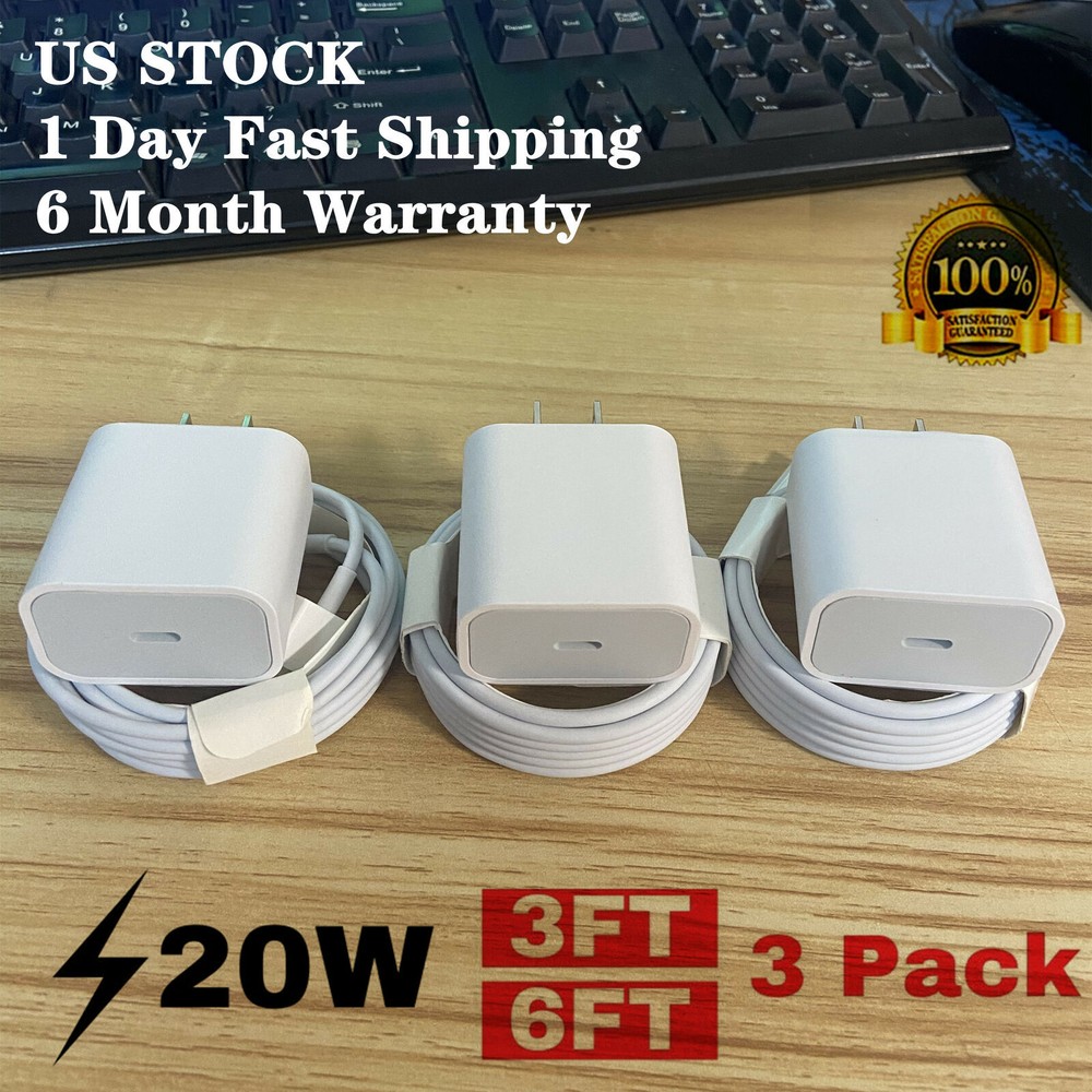 eBay 3-PACK 20W Fast Charging Wall Charger Type-C to iPhone Cable For iPhone 13 12 XR If you choose 1x3ft cable,we will send you 1xcable only,not 3xcables. Specification: Type: PD Fast Charger, Wall Charger , Power Adapter, Car Charger, Charger Adapter, USB-C Cable, Charging & Data Sync Cable, Type-C, USB Cable, USB-C to iPhone Cable Features: Fast Charge, Lightweight Color: White Length: 1m/3ft,2m/6ft Ultra-Fast Charging : 20W USB-C For iPhone fast charger, For iPhone 12 up to 50% in just 30 minutes, which saves more than 1 hour for you, when compared to the 5W original charger. Fast Charging & Data Transfer : Top quality For iPhone cable is made of excellent copper cord, which charge For iPhone safely and fast. Work perfectly with wall charger or computer. It not only a safe For iPhone charge cable, but also a fast transferring For iPhone data cable. Tangle-free 6 Foot length is convenient for usage while charging and sync at home/office/travel in bed, hotel rooms, and more. Safety Protection: The Charger Internal High-Quality Chips Protect Your Devices from Heating, Short-circuiting, and over Charging. Our Technology Teams Make Tens of Thousands of Tests to Ensure Users and Devices Safety . Universal Compatibility: 20W USB-C power adapter & C to iPhone cable set, compatible with for iPhone 12/12 Mini/12 Pro/12 Pro Max/11/11 Pro/11 Pro Max/XS/XS Max/ XR/X/8 Plus/8, For iPad Pro/Air/ Mini and More. Travel Ready : Lightweight and pocket-size, USB-C wall charger with 3FT charger cable maximizes portability wherever you go. And a wide range of 100-240V input makes it ideal for world travel. Comprehensive Compatibility : With the Corey kin 20W wall charger to access the fast charging For iPhone 14/14 Plus/14 Pro/14 Pro Max, For iPhone 13 mini/13/13 Pro/13 Pro Max, For iPhone 12/12 Mini/12 Pro/12 Pro Max/11/11 Pro/11 Pro Max/XS/XS Max/ XR/X/8 Plus/8/7/7 Plus/6; for iPad Pro 10.5”/for iPad Air 3 10.5”/for iPad Mini5 7.9” and More.