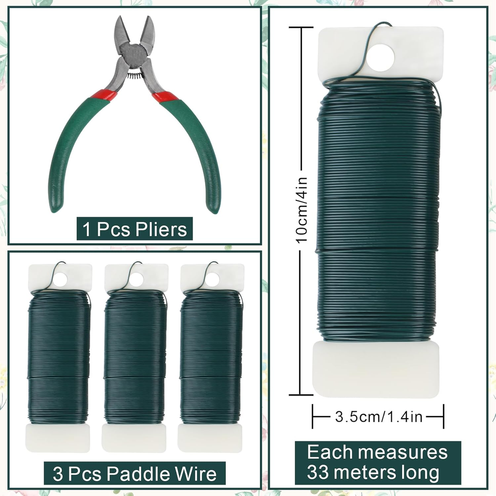 【Versatile Applications】:Whether you're wrapping gifts, creating stunning floral arrangements, or adding that special touch to your Christmas decorations, this Green Floral Wire is your go-to solution for all occasions! 【Easy to Use:】:The Green Floral Wire is designed for effortless crafting, making your decorating projects a breeze! Say goodbye to complicated tools and hello to convenience. 【Great Value Set】:Our Green Floral Wire comes in a generous set, You will get 110 yards green paddle wire 22gauge in 3 rolls, along with a wire cutter, enjoy peace of mind with our customer support for any inquiries! 【Perfect for Holiday Decorating】:Elevate your festive spirit with our Green Floral Wire! It's perfect for creating beautiful holiday wreaths, garlands, and more, adding that extra flair to your Christmas celebrations. 【High Quality】:Made from durable materials, our Green Floral Wire ensures reliable support for your designs while maintaining its flexibility, Get ready for sturdy projects that withstand the test of time! Introducing floral wire kit includes Are you ready to unleash your creativity? This vibrant Green Floral Wire is perfect for all your crafting needs! Whether you're a seasoned florist or a DIY enthusiast, this versatile wire is an essential addition to your toolkit. It’s robust yet flexible, making it ideal for arranging beautiful bouquets, securing floral decorations, and even crafting stunning homemade jewelry! With its delightful green color, this floral wire seamlessly blends with plants and flowers, ensuring your arrangements look natural and eye-catching. Say goodbye to plain, boring assistive materials and hello to the fabulous Green Floral Wire that brings a pop of color and efficiency to your projects! Product Features: Paddle Wire: Size: 110 yards long, 22guage wire Color: dark green Quantity: 3 rolls Wire Cutter: Color: green Quantity: 1 pair Don’t miss out on the chance to elevate your crafting game. Grab your Green Floral Wire today, and let your imagination bloom!