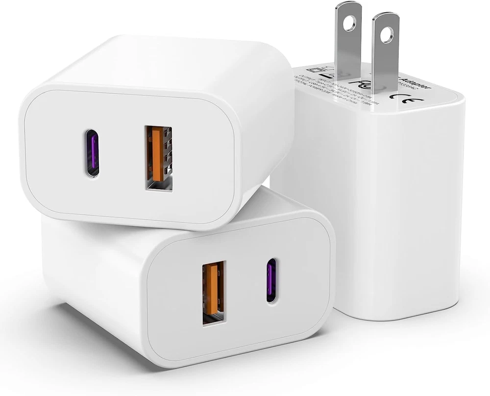 ♦Smart Double USB Port Design: With both a USB-C port and a USB-A port, you can charge up to 2 devices simultaneously. Minimize waiting time and frees you from messy chargers with various interfaces. ♦Power Delivery Fast Charging: The USB-C port supports a maximum power output of 20W. iGENJUN USB C Charger Offers fast and efficient charging up to 3 times faster than a 5W charger. Charge your i Phone 15 14 up to 60% capacity in just 30 minutes with the original cable. ♦Safe & Reliable: Equipped with a smart chip, which can adjust the input power of the phone to prevent the phone from overcharging and overheating. The USB C wall charger provides multi protections against over-current, over-voltage, over-heating and short-circuit. Keep your device safe and ensure safer charging overnight. ♦Universal Compatibility: 3 Pack type C charger block matches all USB A and USB C cable cords. Like i Phone 16/16 Plus/16 Pro/16 Pro Max, i Phone 15/15 Plus/15 Pro/15 Pro Max, i Phone 14/14 Plus/14 Pro/14 Pro Max, i Phone 13/13 Mini/13 Pro/13 Pro Max/SE, i Phone 12/12 Pro/XS Max/XR/X/8/7/6/6s, Samsung Galaxy, Android, LG, Nexus, HTC and more devices. ♦What You Get: 3 pack Dual-port (PD USB C 3.0 & USB A) i phone charger block (White). If you have any questions, please feel free to contact, We will answer and solve the problem for you within 24 hours! Product Description 3Pack iGENJUN 20W Dual Port QC+PD 3.0 charger block fast charging Safe wall plug with Full Protection Smart IC technology to protect it from high-voltage and heat temperature, ensure safety when charging your device. 20w usb-c power adapter Fast power delivery 20w charger, 3x faster charging effeciency with minimum size. A time-saving charger when you are in a hurry. Specifications Input: 100-240VAC 50/60Hz 0.6A Output: Type-C 5V=3A/9V=2A/12V=1.66A Output: Type-A 5V=3A/9V=2A/12V=1.66A TOTAL POWER: 20W Material: PC fireproof material