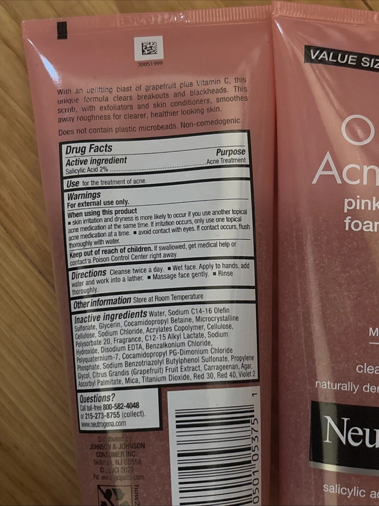 3 Pack Neutrogena Oil Free Pink Grapefruit Acne Face Wash, Exp: 11/14 & 12/24. One with damaged lid