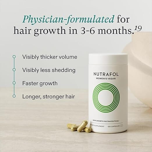 Achieve healthier, thicker hair with Nutrafol Women's Balance Hair Growth Capsules, specifically designed for women aged 45 and up. This 3-pack offers a 3-month supply of clinically proven ingredients that support hair growth, strength, and overall scalp health. Nutrafol helps address the root causes of thinning hair in women, including hormonal changes, stress, and aging. Each capsule contains a blend of natural, plant-based ingredients such as saw palmetto, ashwagandha, and biotin to nourish and rejuvenate your hair from within. With regular use, you can experience noticeable improvements in hair density, shine, and manageability. Key Features: 3-Pack (3-Month Supply) Specifically formulated for women 45 and up Clinically proven to promote hair growth and strength Targets the root causes of thinning hair like hormonal changes and stress Natural, plant-based ingredients Supports healthy scalp function and hair density Revitalize your hair and confidence with Nutrafol Women's Balance β your go-to supplement for fuller, healthier hair. Order now for a 3-month supply!