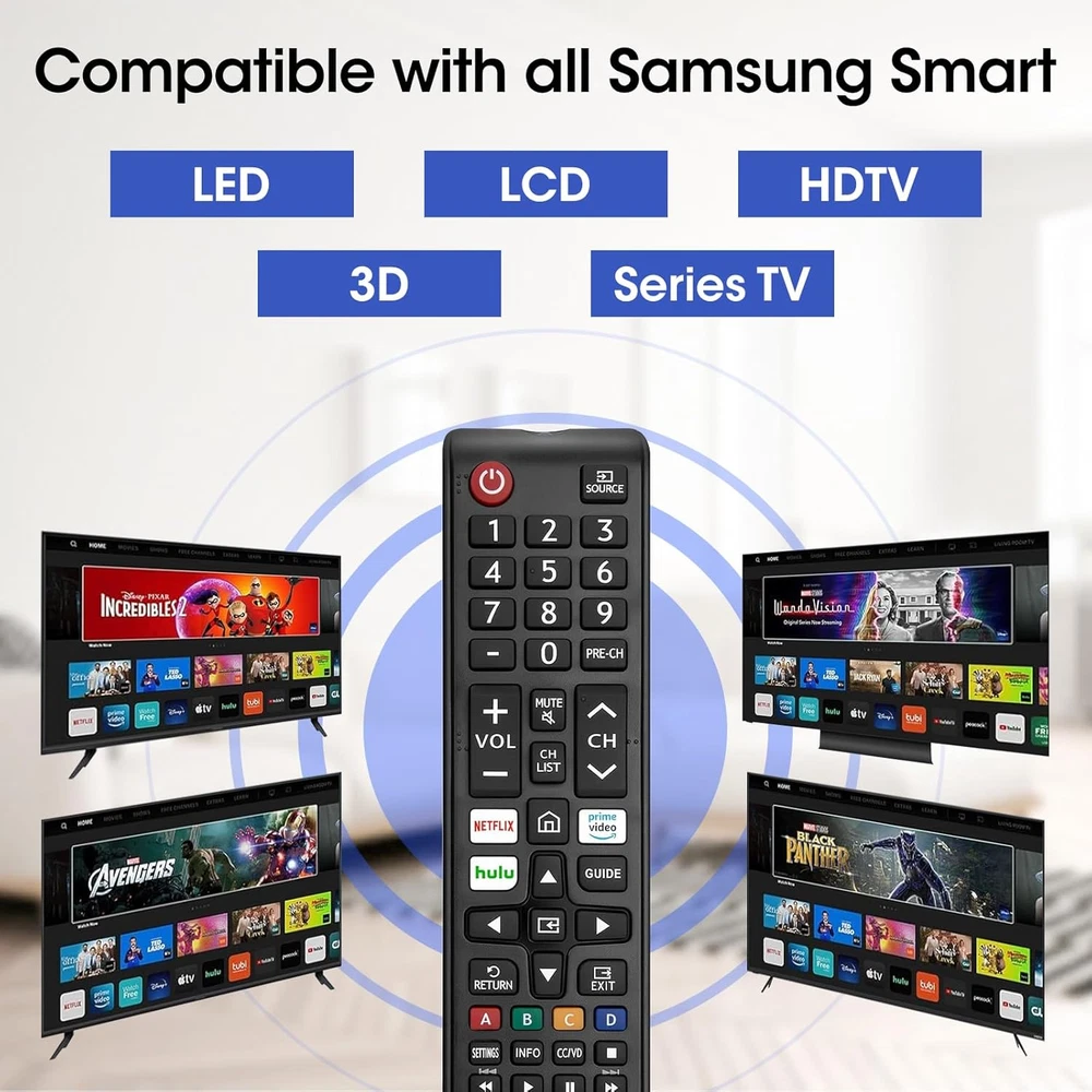 Store New Arrivals Add to Favorite View Feedback Contact Fast deliveries to the customer's home Quality customer service John Make the customers happy! 3 Pack Remote for All Samsung TV Remote, Replacement Compatible with All Samsung Smart Tvs, LCD, LED, 3D, HDTV, Series Tvs Description No Setup Required: 3 pack remote control for Samsung TV which can solve your home backup remote control needs. Simply Insert 2 AAA batteries (Not included), then turn on your device and it will automatically pair, perfectly replacing your original remote control Upgrade Material: It is made of high quality ABS and silicone, ABS improves durability, can be used for a long time, and also keeps you and your children away from harm Completely Compatible: This infrared replacement remote compatible with all Samsung smart TV, LED, LCD, HDTV, 3D, series TV, compatible with all Samsung series tvs. And it is a good backup remote for your Samsung smart TVs Key Features: Our replacement remote control comes with 3 popular shortcut buttons, including NETFLIX, Prime-video and hulu. Strongest signal by mature infrared technology, farther transmitting distance, stable performance, following the movement of the TV page without obvious delay Satisfaction Service: If you have any questions, please contact me on Amazon, we will reply you within 24 hours and help you Product Description Item Weight 8.1 ounces Color J-3P Product Dimensions 5 x 1.8 x 0.6 inches Country of Origin China Compatible Devices Television Max Number of Supported Devices 1 Special Feature Digital Display ABOUT US We offer the best prices around on high quality products. Our E-store includes media such as books, movies, music and games while offering electronics, toys, sporting apparel, clothing, tools, general home, garden items and more. SHIPPING We are always working hard to ensure your package arrives as soon as possible. Please understand that some factors like weather, high postal traffic, and the performance of shipping companies are outside of our control. We offer free shipping to the lower 48 states and ship within 2 business days of payment, usually sooner. We do not accept P.O. Boxes. Please provide a physical address. For shipping outside of the continental USA, we only use eBay's Global Shipping Program. The item is shipped to KY and then sent to the rest of the world. International customers are responsible for all duties and taxes. Continue to 'check out' to calculate costs for shipping the item to your country. Messages regarding eBay's Global Shipping Program MUST be directed at eBay EXCLUSIVELY. RETURNS We offer a 30-Day Return Policy on items in which you are not completely satisfied with. You have the option of a full-refund or an exchange of the item. No returns are available on items shipped outside of the USA PAYMENT We accept PayPal. CONTACT US This page content is yet to come Please ad us to your favorite seller and visit again later Thank You CUSTOMER SATISFACTION We try our very best to make sure every customer is completely satisfied. If there's a problem, message us! We're happy to help. WE ACCEPT