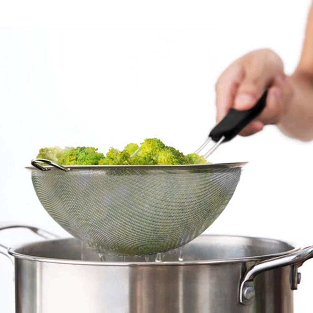 Is your current food strainer rusty? Our fantastic strainer set is made of first class stainless steel 18/8, BPA free, Lead and Cadmium free. It won’t rust, bend, or break! Are your current food strainer's handles come off easily? Are the handles hot when you handle the hot pasta or noodles? We studied a lot. We improved our strainer handles with rivet and plastic. Our premium handles are riveted to the bowl so it will never come off! You'll never have to worry about handles coming off or a freak accident due to excessive weight contents in the strainer while holding it. The soft, non-slip elevated handles provide a firm comfortable grip. The plastic construction allows you to handle even the hottest pasta or noodles without a hassle. Food Grade Stainless Steel 18/8 Construction: Our mesh strainer is made of first class Stainless Steel 18/8 that is BPA free, Lead and Cadmium free. It is rust free and will never affect the taste of your food! Riveted and Heat Resistant Handles: Our premium handles are riveted to the bowl so it will never come off! The soft, non-slip elevated handles provide a firm comfortable grip. The plastic construction allows you to handle even the hottest pasta or noodles without a hassle. 30 Mesh Extra Fine Strainer: Our extra fine sieve is 30 mesh and two layers of tightly woven. It is great for filtering fine grains like quinoa, flour, rice and sugar. 3 Different Sizes Strainers Set: Our food sifter set includes 3 3/8", 5 1/2", and 7 7/8" strainer sizes, which are the most popular and preferred sizes needed to handle all your straining, sieving, sifting, filtering and rinsing tasks. Nest the strainers together for space saving storage or hang them together within reach of where you use them the most. : We are so confident in the quality of our mesh strainer that we offer you a . Reach out to us if there’s ever anything you need; we are dedicated to your satisfaction.