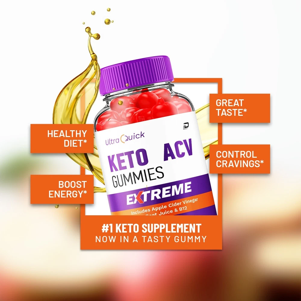 UltraQuick ACV Gummies Advanced, Quick Ultra + ACV Gummies Apple Cider Vinegar 1000MG Supplement, QuickUltra Keto + ACV Gummies, Vitamin B12 and B6 with Pomegranate Ultra Quick Keto ACV Gummies Supports Metabolic Health: May aid in boosting metabolism and enhancing energy levels, helping you stay active throughout the day. Quick Ultra ACV Gummies Promotes Digestive Wellness: Contains apple cider vinegar, which is traditionally linked to improved digestion and gut health. UltraQuick Keto Apple Cider Vinegar Friendly Formula: Crafted that may help seamlessly into a ketogenic, supporting your low-carb lifestyle with ease. QuickUltra Gummies Convenient Daily Dose: Easy-to-take gummy format ensures you get your daily apple cider vinegar without the strong taste or acidity. UltraQuick Keto ACV Gummies Rich in Essential Nutrients: Includes key vitamins that may support overall health while adhering to your dietary goals.