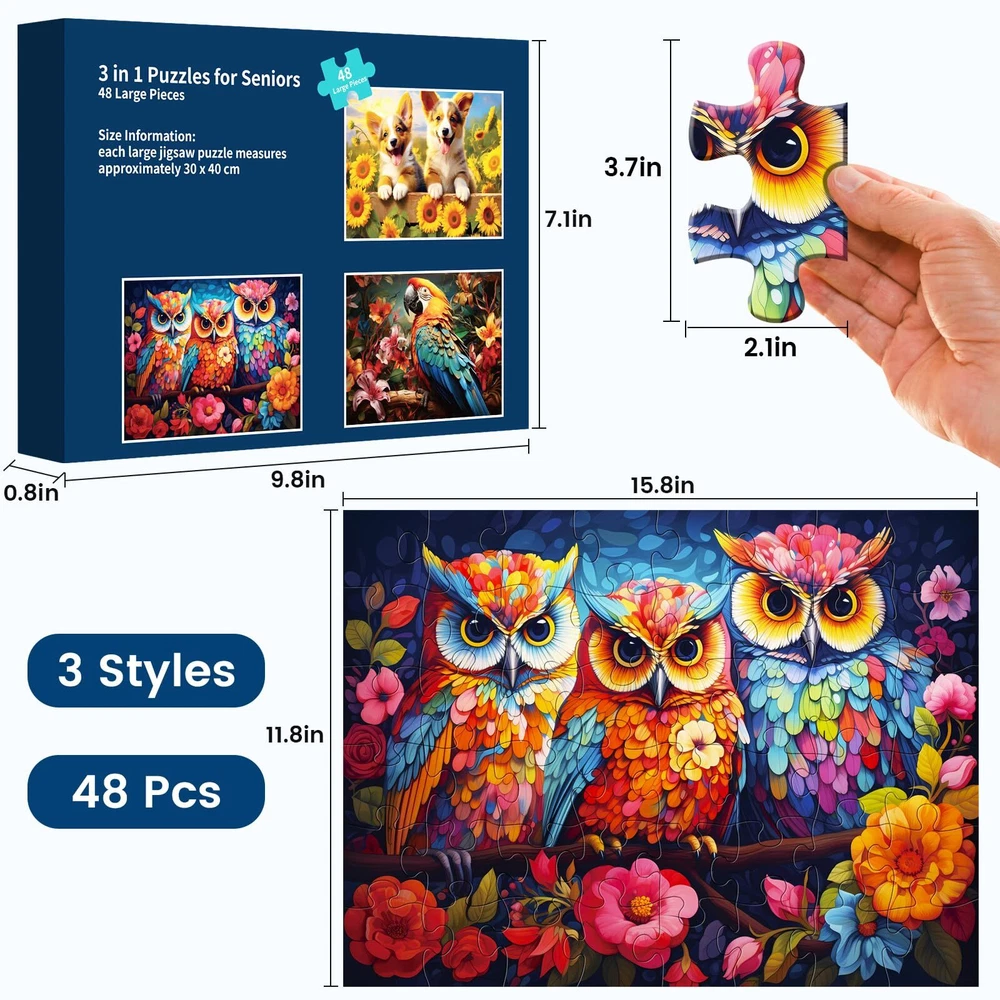 3 Packs Large Piece Puzzle for Seniors - Dementia 48 Pieces Puzzles for Elderly Adults,Alzheimer’s Puzzles Memory Cognitive Games for Elderly Seniors with 3 Storage Bags 🍀[What You Will Get]:You will receive 3 sets of Alzheimer's products, each set has 48 pieces of puzzles.These large piece puzzles are specially designed for seniors, including those with dementia and Alzheimer's, aiming to infuse joy into their daily lives and delay cognitive decline. 🍀[Durable&Friendly Design]:Made of eco-friendly paper, our puzzle are easy to clean and can be used multiple times.Very durable! 🌸0.1 in-extra thickness design makes it very friendly for seniors with flexibility or mobility challenges. 🍀[Cognitive Games for Elderly]: While bringing a good gaming experience to the elderly, 3 different themes and colorful images help improve the memory, concentration and thinking clarity of the elderly. 🍀[Size Information]: Our large jigsaw puzzles for seniors measure approximately 12 x 8 inches and unique texture design offer seniors a multi-sensory experience that's both tactile and easy to manipulate. 🍀[Best Gifts]:Looking for gifts for adults? Our jigsaw puzzles are a best gift for seniors with Alzheimer's disease to make their day brighter.🌸Don't worry - there is no mention of dementia on the packaging. 🍀[What You Will Get]:You will receive 3 sets of Alzheimer's products, each set has 48 pieces of puzzles.These large piece puzzles are specially designed for seniors, including those with dementia and Alzheimer's, aiming to infuse joy into their daily lives and delay cognitive decline. 🍀[Durable&Friendly Design]:Made of eco-friendly paper, our puzzle are easy to clean and can be used multiple times.Very durable! 🌸0.1 in-extra thickness design makes it very friendly for seniors with flexibility or mobility challenges. 🍀[Cognitive Games for Elderly]: While bringing a good gaming experience to the elderly, 3 different themes and colorful images help improve the memory, concentration and thinking clarity of the elderly. 🍀[Size Information]: Our large jigsaw puzzles for seniors measure approximately 12 x 8 inches and unique texture design offer seniors a multi-sensory experience that's both tactile and easy to manipulate. 🍀[Best Gifts]:Looking for gifts for adults? Our jigsaw puzzles are a best gift for seniors with Alzheimer's disease to make their day brighter.🌸Don't worry - there is no mention of dementia on the packaging. Shipping from the USA All of our products are shipped from the USA, ensuring quick delivery to your destination. Payment We offer the following payment methods: PayPal, credit card, bank transfer, and eBay's secure payment system. Free Shipping & Free Returns Shipping within the USA is FREE. Additionally, any return is absolutely free for you. Risk-Free Purchase You have the option to return an item within 30 days without any justification. We cover the return shipping costs! Fast Shipping We ship immediately upon receipt of payment. Generally, the package is delivered within 2-3 days in the USA. If it takes longer, we will contact you. Quality and Costs Made in Europe, USA, China No customs fees or additional charges Total satisfaction guarantee Invoice with declared VAT available upon request in .pdf format Feedback Your feedback is very important to us. After you pay for your purchase, you will automatically receive positive feedback from us.