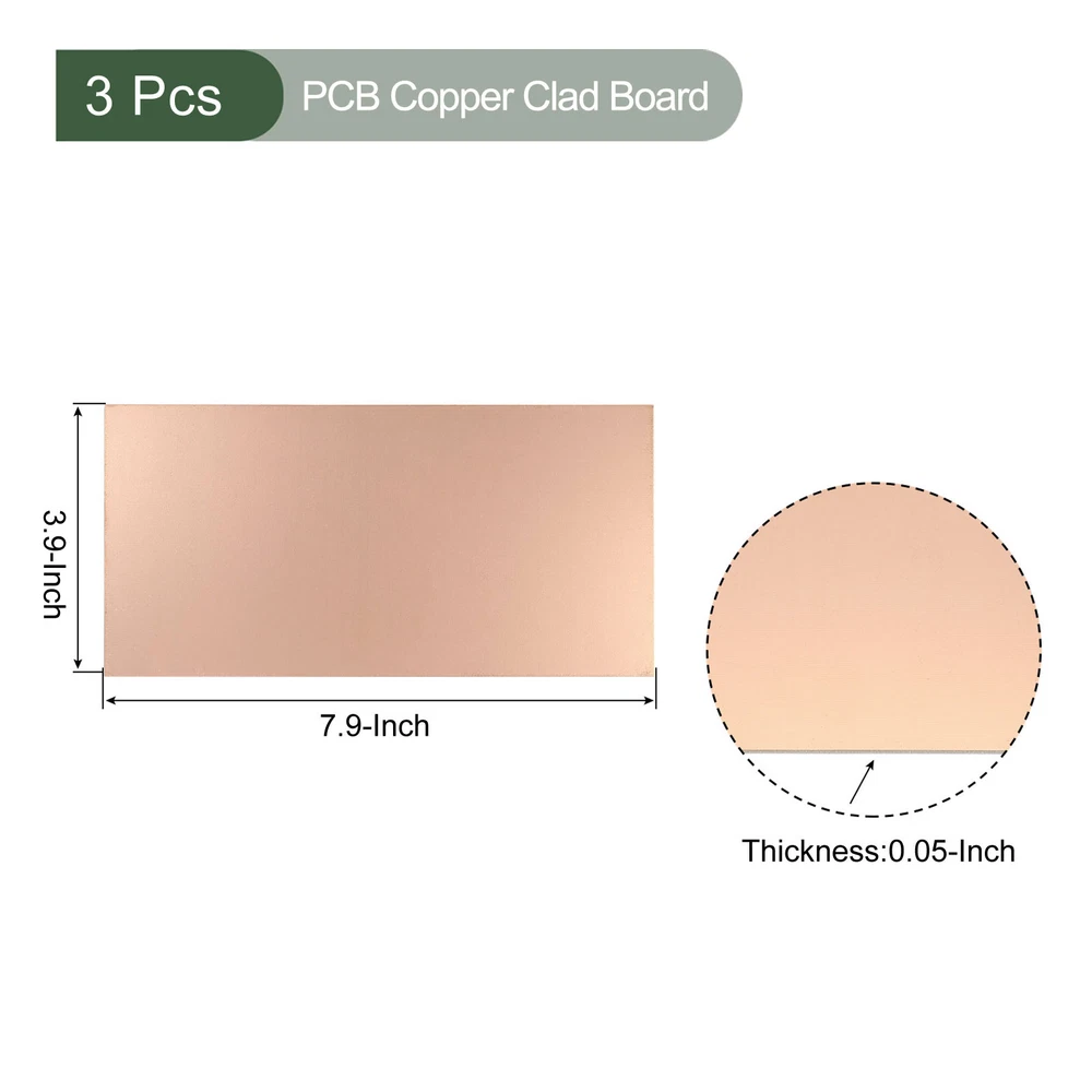 3 Pcs PCB Copper Clad Board, Single-Sided Circuit Boards (200mmx100mmx1.2mm)