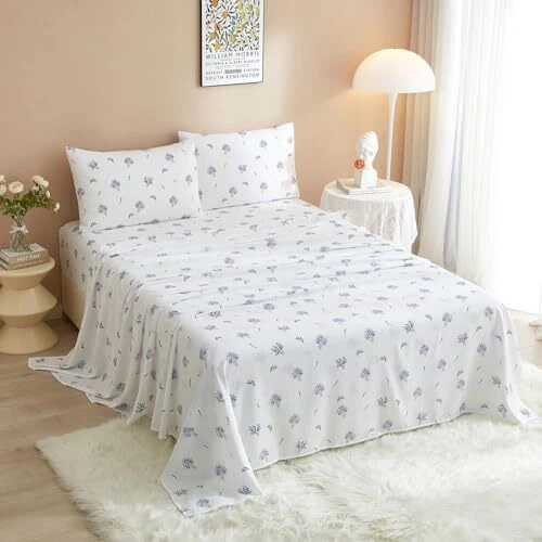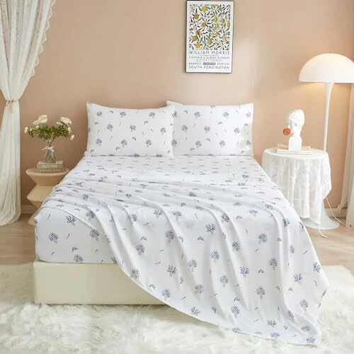 Return Policy Fast Delivery Trusted seller 3 Piece Twin XL Bedding Sheet Set White Floral Sheets Set Cute Lavender Flower Bedding Sheets Soft Microfiber Sheets Comfy Cooling Bed Sheets Deep Pocket Fits 16" Mattress Easy Care Bed Sheets Product Description Soft Cozy Microfiber Sheets Set: This floral print twin xl sheets set is made of 100% washed microfiber fabric, softer than cotton sheets, cozy and comfortable. Microfiber cooling floral sheets set is breathable and moister-wicking, wrinkle resistant, non-pilling and easy care, adds strength and durability for long-term uses and gets softer with every wash. Get ready to sleep in cloud-like comfort every night with our smooth soft floral botanical bedding sheets. 3 Piece Twin XL Size Sheets Set: Ultra soft floral pattern twin xl sheets set includes 1 flat sheet 66"x102", 1 fitted sheet 39"x80"x16", 1 pillowcase 20"x30" envelope closure. Deep pocket fitted sheet fits mattresses up to 16" with elastic all around to snug fit your mattress without slipping off, let you enjoy easy bed making experience. Our beautiful floral print sheets set provides you a sound sleep and wake up each morning feeling refreshed. Aesthetic Floral Print Sheets Set: Vintage garden floral white sheets set features chic lavender flower green leaves botanical print pattern, adds refined elegance and nice sophistication to your home decor. Say goodbye to boring solid sheets, refresh your bedroom with this exquisite floral and lilac flower print fashionable botanical sheets set. Perfect for your bedroom, guest room, kids’ room, RV, vacation home, camping. Also, it’s a Great Gift for your loved ones on special occasions. Easy Care: The boho floral botanical twin xl sheets set is machine washable and easy to maintain. Machine wash separately on gentle cycle with cold water. No bleach. Tumble dry on low heat or sun dry. Featuring premium microfiber fabric with expert stitching and seams, this cooling sheets set is extremely durable and long lasting, wrinkle free and fade resistant, give you years coziness and comfort. Boho Garden Floral Sheets Set: The 3 piece twin xl size printed sheets & pillowcase set is Standard 100 by OEKO-TEX certified for meeting the highest testing criteria for harmful chemicals and has been found harmless for humans. Layer this twin xl sheets set with a comforter or duvet of your choice and add a vibrant floral accent to your room decor. Visiting the store to find your favorite bedding collections Shipping Returns Payment Shipping Shipping is FREE to all addresses other than APO/PO boxes in the lower 48 states. All our stock ships from US-based warehouses. Shipped via USPS or UPS (depending on location and package weight) Unless stated otherwise, all orders will ship within 24-72 hours of your payment being processed. Check our feedback to see the great reviews of FAST shipping we offer. Returns Seller does not accept returns Payment We currently accept payment via eBay managed payments only. Once payment is cleared, we will dispatch your shipment within 1-3 business days. Please refer to the "Shipping" tab for more information regarding shipping speed to your destination.