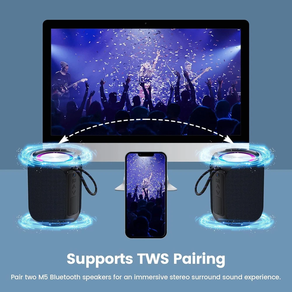 Product Description Bluetooth Speaker, Portable Bluetooth Speaker, 40W True Wireless Speaker, 360ยฐ Stereo Sound Effect, IPX7 Waterproof Speaker with Bluetooth 5.0, 12H Playtime, for Party, Home Theater, Game Theater ๐ใ๐๐-๐ ๐ ๐๐ญ๐๐ซ๐๐จ ๐๐จ๐ฎ๐ง๐ใ-Bluetooth speakers provide excellent HD sound, output power of 40W, create stereo shocking heavy bass, enjoy the passion wave, the maximum volume will not be crackling. Advanced audio processing technology ensures powerful bass and undistorted sound at any volume. ๐ใ๐๐ซ๐ฎ๐ ๐๐ข๐ซ๐๐ฅ๐๐ฌ๐ฌ ๐๐ฉ๐๐๐ค๐๐ซ๐ฌใ-True wireless stereo sound dual paired wireless speakers Bluetooth 5.0, Easily pair two portable speakers to instantly upgrade your 80W stereo surround sound. Realize 360-degree true dual-enhanced stereo sound, unlocking high-quality music quality. This is your best companion for gaming and music. ๐ใ๐๐ฑ๐ญ๐ซ๐ ๐๐จ๐ง๐ ๐๐๐ญ๐ญ๐๐ซ๐ฒ ๐๐ข๐๐ใ-The portable speaker has a built-in high-capacity 5200mAh battery, which can continuously play music or make calls for up to 12 hours on a single charge. It allows you to enjoy music for a long time without frequent charging. It is also equipped with USB, TF card slot and 3.5AUX audio input for direct playback, fear long outdoor adventure, music to accompany you all the way to the end. ๐ใ๐๐๐๐ ๐๐๐ญ๐๐ซ๐ฉ๐ซ๐จ๐จ๐ใ-Bluetooth speakers adopts the IPX7 waterproof design, safeguards against rain, spills, dust and sand. Can be fully immersed up to 3ft for 30 minutes without any impact. When you are in a lake, jungle, desert and other harsh environment can be used. No worries about weather, it's an ideal choice for outdoor events. ๐ใ๐๐๐ ๐๐จ๐ฅ๐จ๐ซ ๐๐ข๐ ๐ก๐ญ ๐๐ก๐จ๐ฐใ-This LED light speaker is specially designed to light up your party, it can beat to the beat of music, passionate music and cool lighting effects, so that life has a more pleasant atmosphere. About Us We are a reputable seller with many years of experience selling on eBay. Our goal is to provide high-quality products and excellent customer service. Payment 1.We accept PayPal only. 2.All major credit cards are accepted through secure payment processor PayPal. 3.Payment must be received within 7 business days of auction closing. 4.We ship to your eBay or Paypal address. Please make sure your eBay and Paypal address is correct before you pay. Feedback will be left automatically after we receive your feedback. Please contact us before leaving a Negative feedback or Neutral feedback. We would try our best to help you solving any problem. Shipping Items will be shipped within 1-3 business days when we received payment. (Orders are not processed on weekends & holidays) Tracking information will be sent once item is shipped. Delivery time depends on destination and other factors Item is shipped to ebay address. Leaving correct address can minimize delay. For international shipping and shipping to Guam, Hawaii and Alaska, Please contact us before placing the order. International buyers please note: Import duties, taxes and charges are not included in the item price or shipping charges. These charges are buyerโs responsibility. We will try our best to reduce the risk of the custom duties. Local pick-up is unavailable at the moment. Returns For any issues with Defects, Return, Item Exchange request, please contact us first and send us a message first before opening any type of case or request. We devote ourselves making EVERY CUSTOMER in 100% Satisfactory and resolve any problem. We highly value and appreciate your business. Thank you. No returns will be accepted without an RMA number. Please contact us for the RMA number. Return is acceptable within 30 days of delivery. Return for replacement or money back is optional. Returned items must be in the brand new, unaltered and resalable condition. Seller is not responsible for any labor cost, expense in a dealer store, or damage due to wrong installation. Contact Us We reply any email messages within 1 business / working days(off-duty at weekend). If you do not get a response from us, then please check your junk or spam mailbox. Our Business hours: Mon-Fri 9:00-18:00, UTC/GMT +8 hours. Please contact us either by clicking "contact seller" in the "purchase history" section or simply click "ask a question" at the bottom of this page. If you are unsatisfied with our item or service, please contact us before leaving any feedback. We are committed to resolve all issues in a friendly and satisfactory manner. powered by