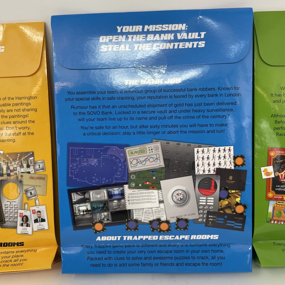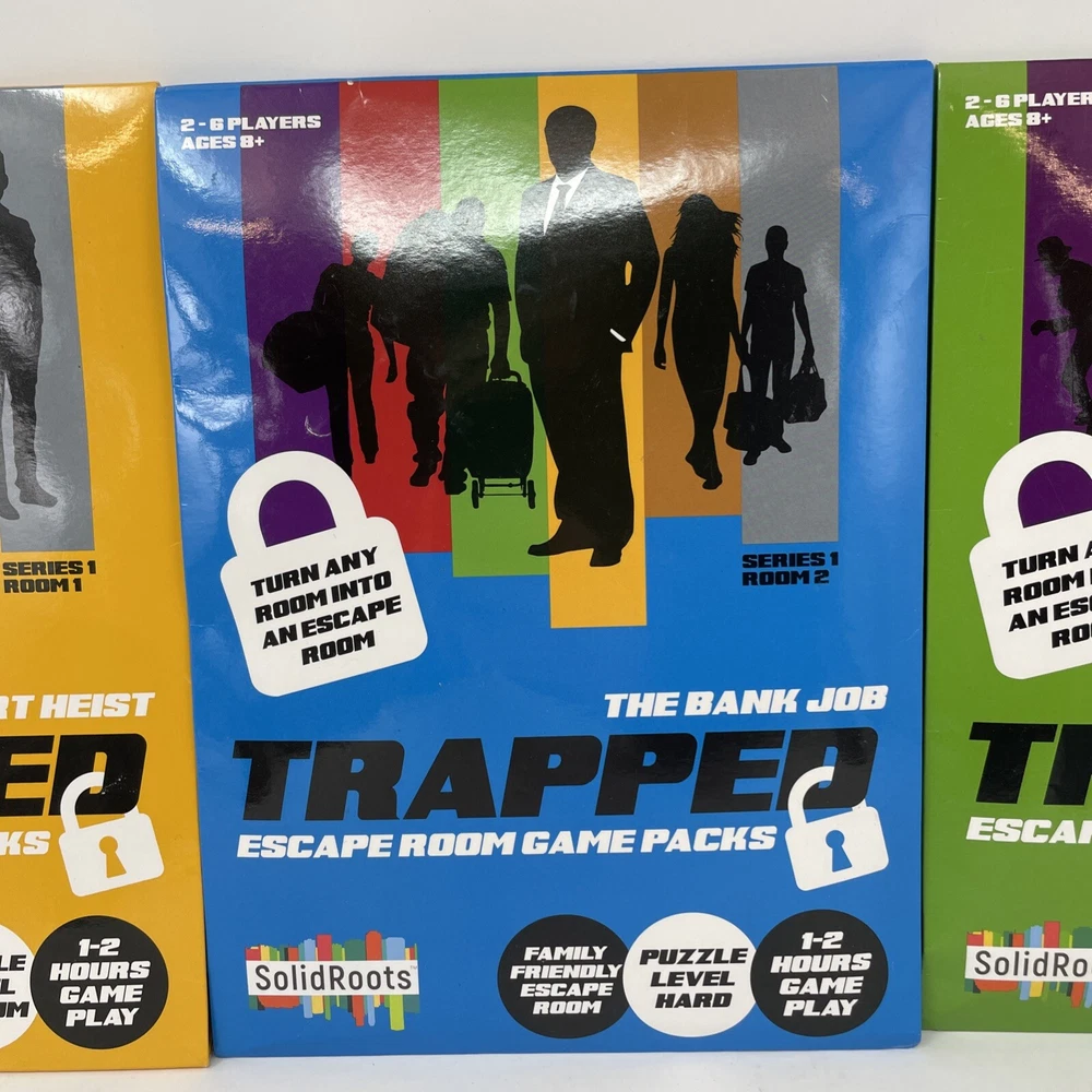 3 Solid Roots Trapped Escape Room Game Packs Bank Job, Art Heist, & The Carnival Brand new, ships same or next day. Please reach out with any questions!
