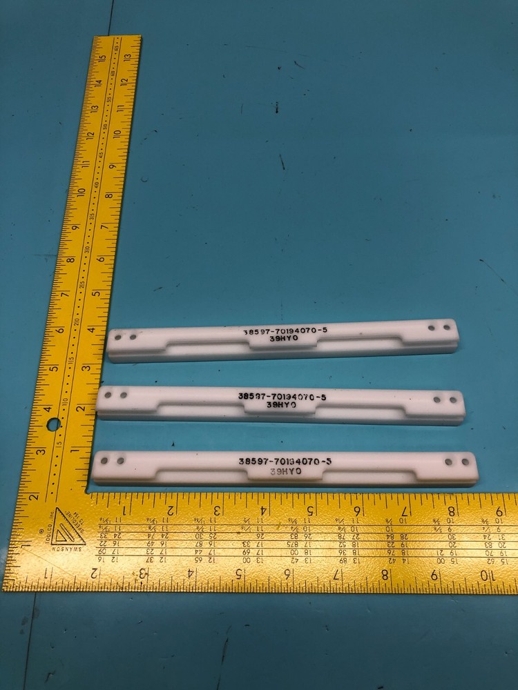 *Please contact us for same-day order processing* 3 TEFLON BRACKET 38597-70194070-5, SUPPORT, HOLDER,GUIDE,39HY0, This item may have scratches and markings on its surface, which could be a result of shipping, handling, or previous use. It is being sold as used and untested, and is being sold as-is. Please refer to the pictures for more details. Price is for 1 LOT of 3 items. We have provided pictures and a detailed description of each item, including its condition. If you have any questions or need more information, please contact us, and we will respond promptly. Please note that we are not selling any additional accessories with the item, such as cables, manuals, or software unless they are explicitly mentioned in the description and shown in the pictures. We cannot test the equipment, and it is being sold "As is and Where is" without any warranty, expressed or implied, regardless of its condition. We encourage you to inspect the products before making a purchase. All sales are final, and no returns or exchanges are permitted. Please review our policies before making a purchase. Buyer is responsible for all shipping and handling costs, including any applicable insurance, taxes, VAT, tariffs, or duties. The buyer is required to sign the shipping confirmation upon delivery of the item, as needed. International buyers: Some products are subject to U.S. export laws and cannot be sold to countries in Group E. We may need up to 30 days to determine the export classification (ECCN) and, if required, an additional 30-90 days to obtain an export license. To comply with regulations, we need a written statement with the End User, End Use, and agreement to follow the Export Administration Regulations (EAR). You will receive an email with required documents, and your order cannot be completed until all information is provided. After we receive your payment, please allow us a period of 3 business days to process and ship your order. We welcome all buyers to inspect the equipment before making a purchase. For additional information, please email or contact us. Farmon Inc. 562 South Milpitas Blvd. Milpitas, CA 95035 Our operating hours are 9 am to 4 pm (PST/GMT-8), Monday through Friday. Appointments can be made for Saturday and Sunday. We would like to acquire any surplus or unnecessary inventory you may have. Feel free to get in touch with us to have your inventory assessed and taken off your hands. We offer a wide range of semiconductor components and equipment, including RF generators, chillers, turbo pumps, cryo pumps, MFCs, vacuum pumps and controllers, step motors, drivers, and more.