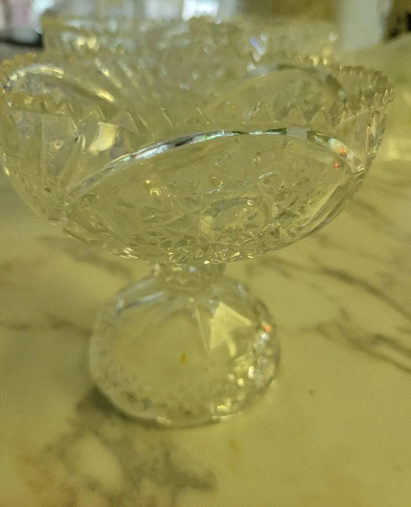 3- Vintage Footed Heavy lead crystal dessert/ice Cream Cups, Cut