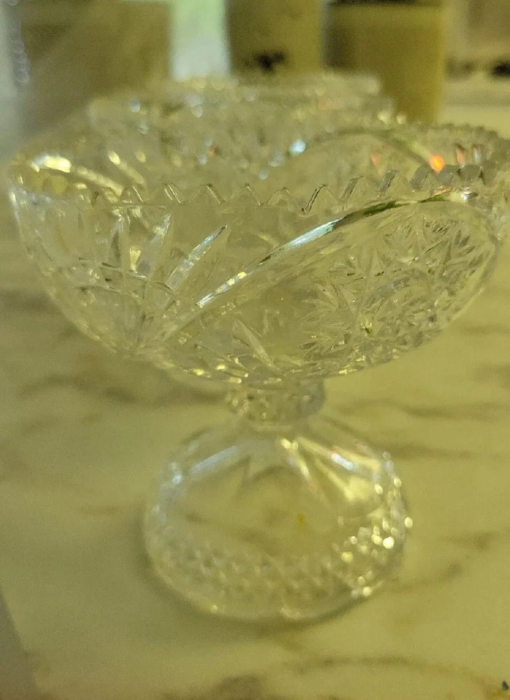 3 Vintage lead crystal dessert glasses. Exceptionally heavy, Gorgeous