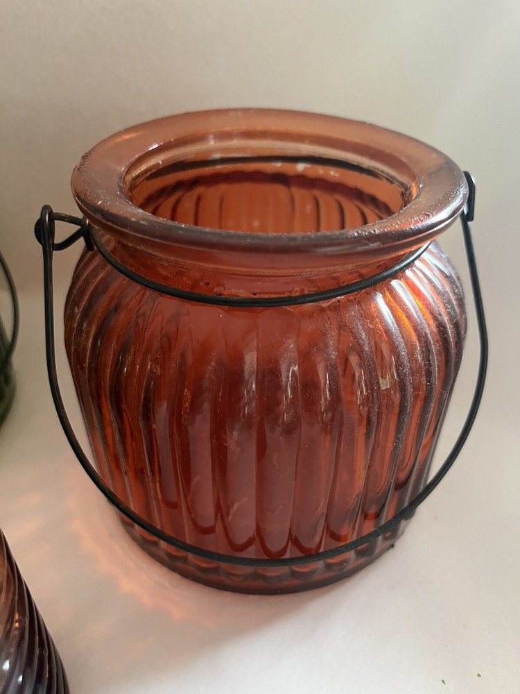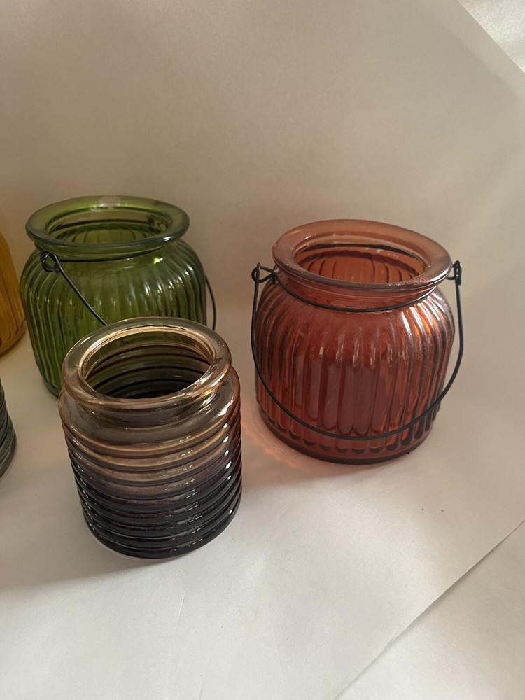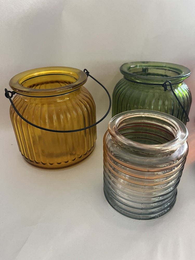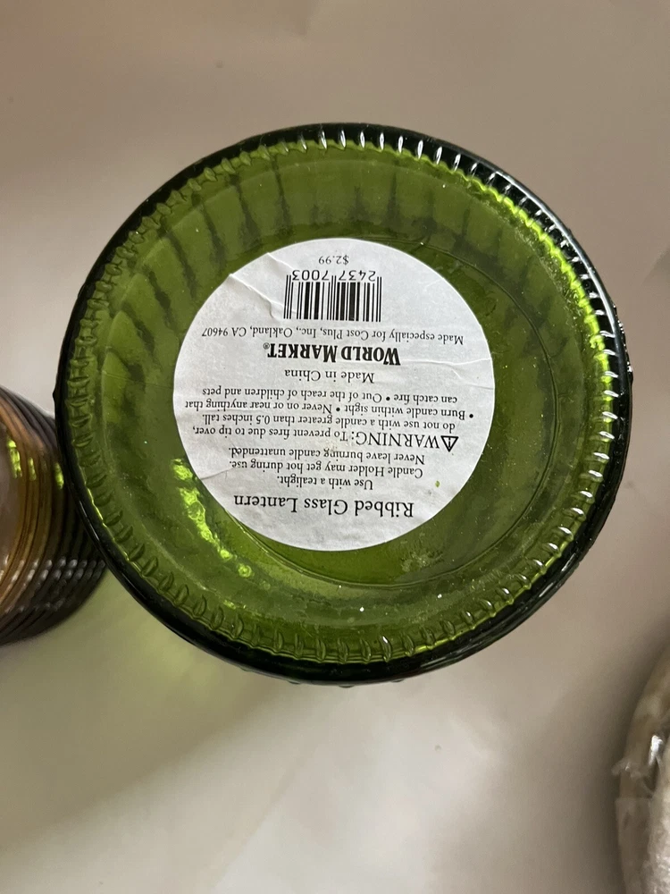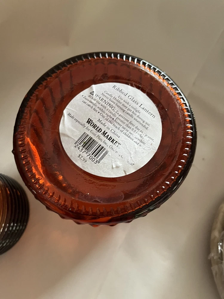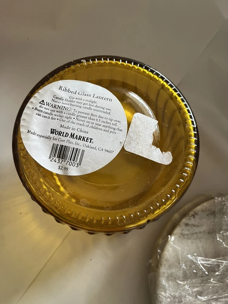 3 World Market Ribbed Glass Lanterns And 2 Tealight Candle Holders Lanterns 5x4.5 Tealight holders 3.5”x3”