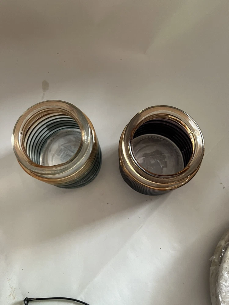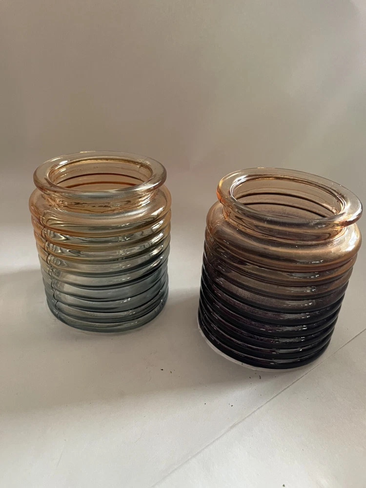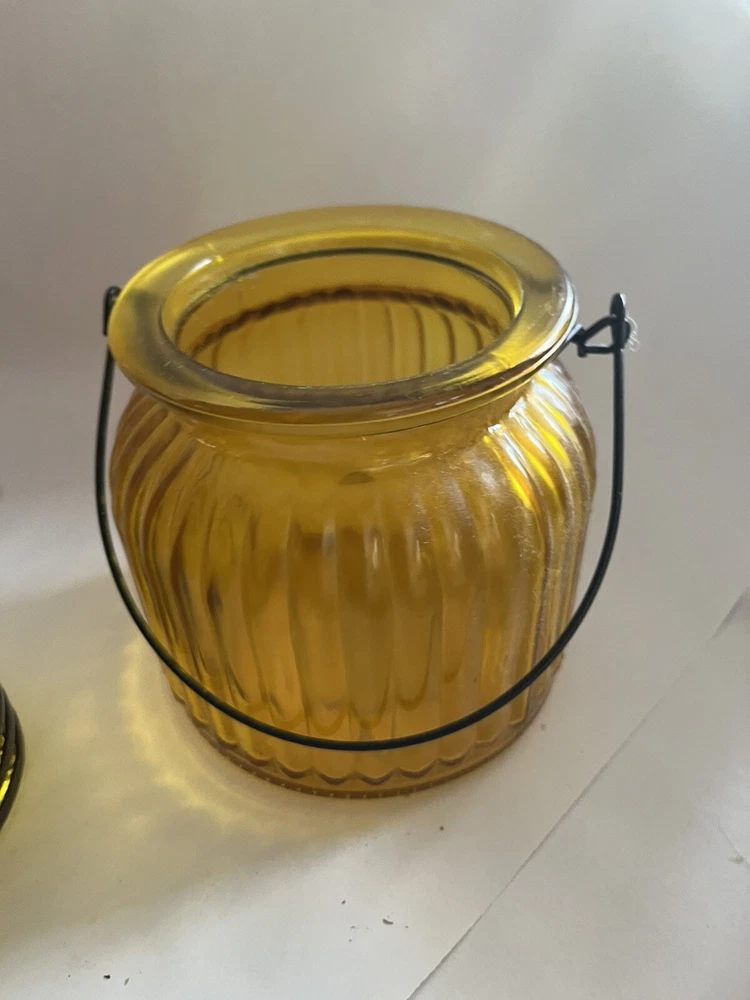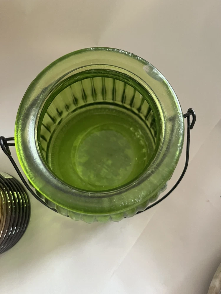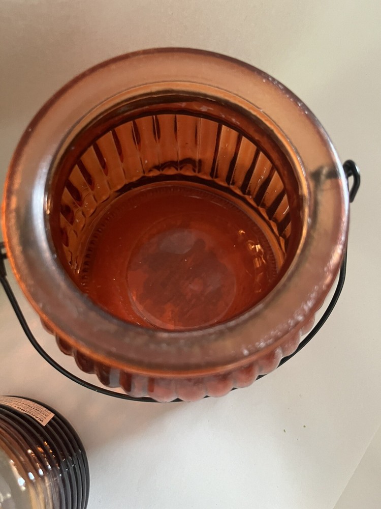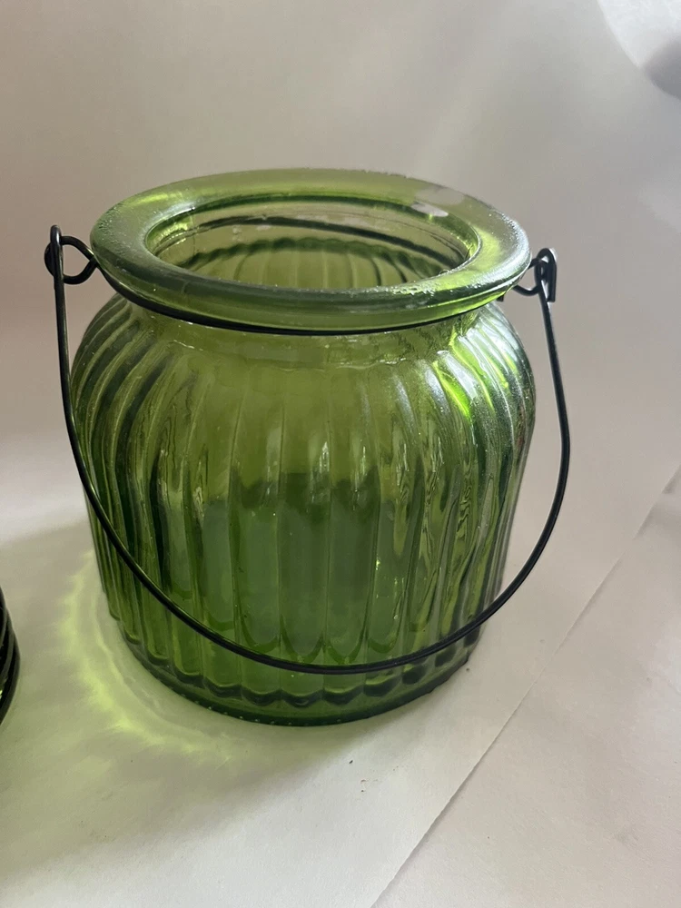 3 World Market Ribbed Glass Lanterns And 2 Tealight Candle Holders Lanterns 5x4.5 Tealight holders 3.5”x3”