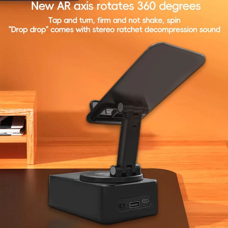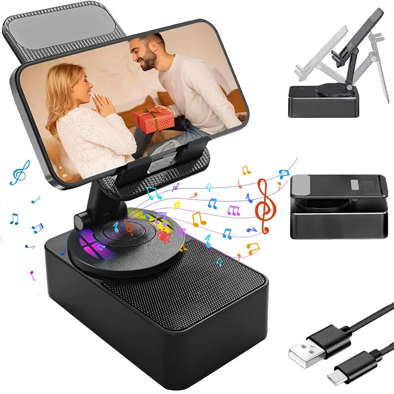 Features 1. Innovative three in one design: Combining a phone holder, power bank, and Bluetooth speaker, it provides a convenient solution for mobile viewing and high-quality audio. 2. 360 ° Listening Feast: With a 40mm independent bass diaphragm at the bottom, the sound is clearer and you can fully enjoy the sound of the music hall. 3. Strong battery life for listening to music for a long time: Low power consumption/long standby time 1500mAh polymer lithium battery increases battery life, and can play about 8 hours of music on one charge. 4. Adjustable stand: A mobile phone stand with wireless Bluetooth speaker and multifunctional viewing angle. The top serves as a support and the bottom serves as the audio system. It can be rotated and folded, providing multiple playability options 5. Sturdy and versatile support: This phone stand with Bluetooth speaker and power bank is designed to accommodate devices weighing up to 8 kilograms, including larger tablets, providing stable Bluetooth 5.0 connectivity for various devices. Specification Battery: 1500mAh (portable power bank model) (playing for 5-8 hours) Input: 5V-1A (Type-c) Output: 5V-2A (USB) Material: ABS+PC Bluetooth: BT5.0 (10 meters) Charging time: about 2 hours Play mode: Bluetooth, USB flash drive Music format: MP3/WMA Speaker power: 5W Product size: 12 x 7.2 x 5.7 cm Color: Black Weight: 330 g Package Include 1 X Mobile phone holder 1 X Loudspeaker box 1 X Charging line 1 X Instructions