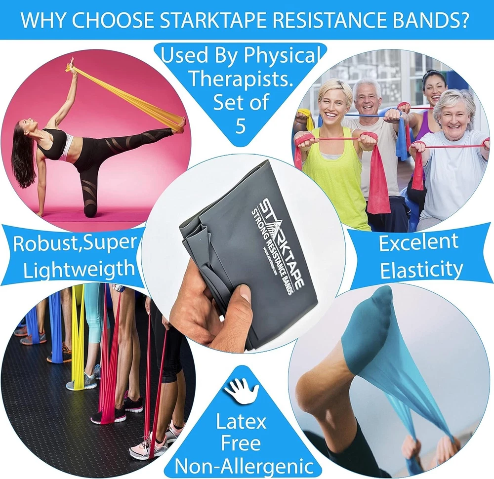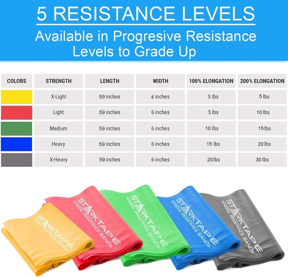 Resistance Bands . 3 or 5 Pack Non-Latex Physical Therapy, Professional Elastic Band. Perfect for Home Exercise, Workout, Strength Training, Yoga, Pilates, Rehab, Gym Non allergenic, non-latex resistance bands. Robust, resilient and durable, with excellent elasticity, the elastic workout band will ensure the best exercise for your legs, butt, upper and lower body. Muscle toning, strength, flexibility improvement and physical therapy are just a few benefits of the perfect training. Super lightweight, portable carrying pounch: you can perform your legs, butt, core, or whole body workout in the comfort of your own home, at the gym, yoga, pilates studio, outdoor on the beach, or on the go. The light weight exercize bands are an easy and comfortable workout tool, proving to be the perfect choice for individual training, as well as for your Stretching, Physical Therapy, Rehabilitation, Bodybuilding, Wrestling, Losing Weight. ft long by 6 inches wide. Suitable for every fitness level, men & women, from beginner to advanced: Your exercise bands set comes in five different resistance levels: Yellow - x-light 5lbs, Red - light 10lbs, Green - medium 15lbs, Blue - heavy 20 lbs, Gray - x-heavy up to 30lbs. You can easily tailor your training depending on your strength, ability, and comfort. It's a perfect alternative to your Strength heavyweights training and dumbells. Easy to use, fun for the entire family, from children to seniors. Whether you are a mom, a dad or a grandma, these fitness bands are right for you. People Love doing fun home exercises with the bands, they are a MUST item for staying in good health. Research has proven that resistance band provides as much benefit in fitness health and strength gains as weights training equipment. Just give it a try and see how would you feel after using the resistance loop bands. We like You! Is it too soon to say that? We care so much about your happiness that we hired a bunch of the best, nicest, most awesome human beings we could find to help with anything you need. We call them the Customer Happiness Team, and they’re your go-to when you need an information, a recommendation, a satisfaction, or just a reason to smile. Seriously, reach out. Even just to say hi. Add to cart now and join thousand satisfied customers! Strength, Flexibility Mobility resistance band is one of the foundation tools of athletic training, sports medicine recovery, and the physical therapy world