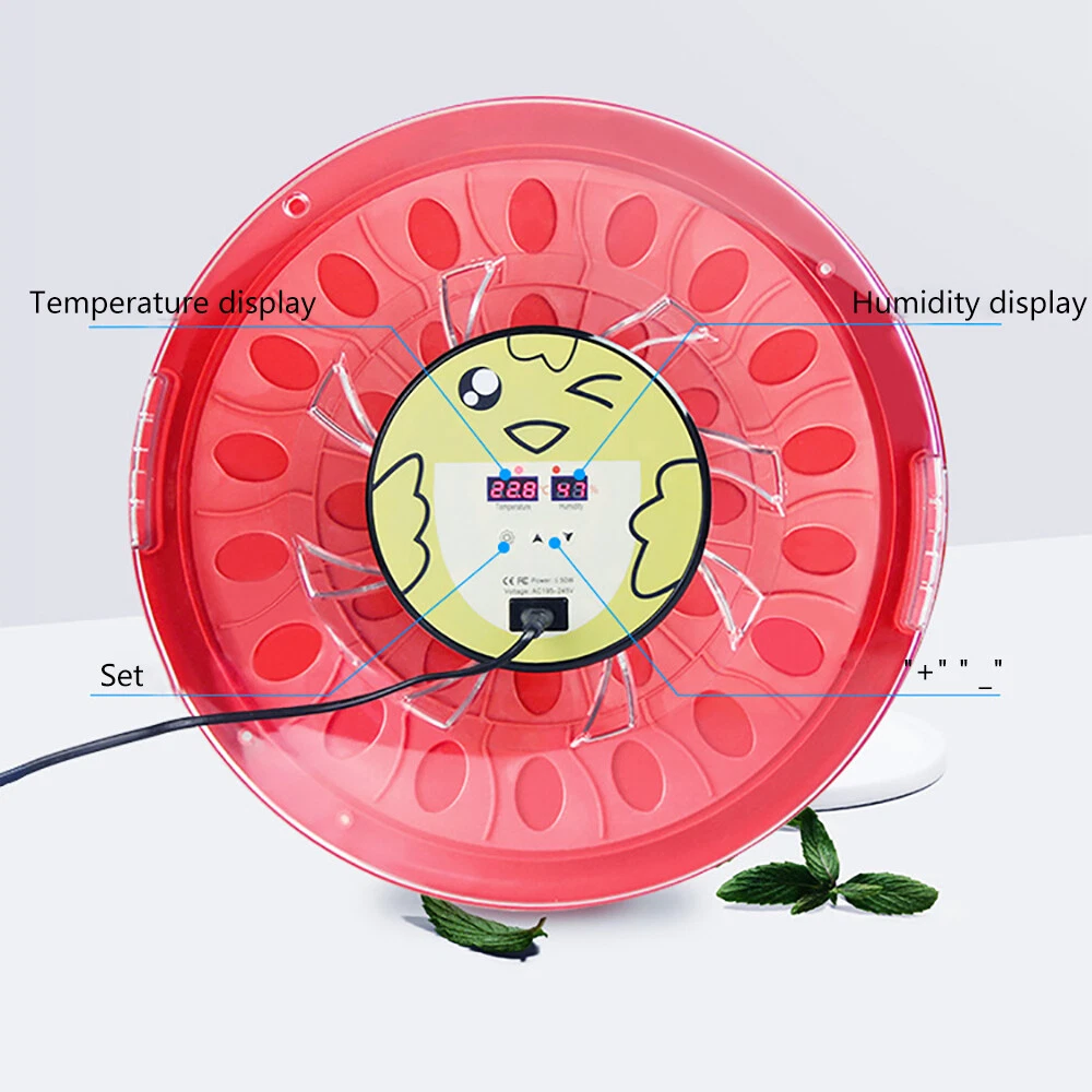 30 Eggs Incubator Digital Automatic Turner Hatcher Chicken Temperature Control Description Features: Large Capacity : High capacity of hatching 30 eggs , built in fans with low noise, circulates air for evenly distribute the inner temperature. Simple control panel : The incubator is equipped with the automatic temperature control, which enables intuitive display of temperature, humidity, digital temperature control, efficient monitoring and careful maintenance for easy operation. Rotate eggs automatically : Bionic automatic egg turner simulating hen hatching mode, automatically turning eggs. Digital temperature control : Sensitive temperature and humidity sensors enable you to adjust hatching conditions timely and improves hatching rate. The adjustable temperature is 30-39.5, easuy to operate by buttons.Automatic temperature control, displays the current temperature and humidity. Scope of application : Suitable for hatching chicken, duck, pigeon, quail eggs, other poultry and bird eggs, perfect for household, laboratory or teaching use. Note: 1. The eggs for hatching be fertilized eggs. 2. Keep an eye on the humidity reading and fill the water channel when needed (normally every 1-2 days). 3. Don't open the lid frequently when the chicks start to , you could fill water through kettle. Specifications: Voltage: 110v/220V Color: Red + Transparent Material: ABS + PET Capacity: Hold 30 Eggs Temperature: 30-39.5 , adjustable Power: ≤45W Item Size: 40 x40 x 9cm / 15.7x15.7x 3.5in Package Size: 46.5 * 45 * 14.5cm / 18.3 * 17.7 * 5.7in Weight: 1.5kg Package List: 1 * Egg Hatcher 1 * Power Cord 1 * Water Kettle 1 * User Manual (English) Payment Delivery details Terms of sales About us Contact us Payment We accept ebay payment 。 Fees such as import duties, taxes are not included in the item price or shipping costs. These charges are the buyer's responsibility. Delivery details Shipping: 2-9 working days to: USA Terms of sales We maintain high standards of excellence and strive for hundred percent customer satisfaction. Feedback is very important to us. We hope that you contact us immediately before you give neutral or negative feedback, so that we can address your concerns. It is impossible to address issues if we do not know about them! About us Your satis faction is our ultimate goal. We work hard to earn your trust and future business. Our certified technicians have tested each item before shipping. The unit comes with 1 year limited warranty on all manufacturing defects. a) If you receive a defective item, you may return it or ask for a discount. Please contact us within 14 days after you receive the package. b) What you returned must be intact and in its original packaging as re? u. Customer is responsible for shipping costs of the returned item. c) We will cover the cost of shipping back t with the shipping rate indicated in the registration page. We will send you a new unit or refund the full payment you paid. Thank you. Contact us Business Hour Business Hour: Monday To Friday: 8:30 AM to 5:00 PM (Beijing China time) Due to time zones, our reply to your questions may not be immediately. But within above working time, we will reply your email within 24 hours. If it's non-workdays, please kindly be patient and wait till Monday. Please contact us with ebay message. Please feel free to contact us if you have any questions. Monday To Friday: 8:30 AM to 5:00 PM (Beijing China time) Due to time zones, our reply to your questions may not be immediately. But within above working time, we will reply your email within 24 hours. If it's non-workdays, please kindly be patient and wait till Monday. Please contact us with ebay message. Please feel free to contact us if you have any questions. *Feature* High Quality, 2 Years Warranty Type Hatching Egg Brand Unbranded Power 45W Voltage 110V Output power DC 12 V 3 A Temperature 30-39.5 ℃, adjustable Size 15.7x15.7x 3.5in Color Red & Clear Material ABS + PET Capacity 30 Eggs Poultry Type Chicken Weight 1.5 Kg UPC Does not apply