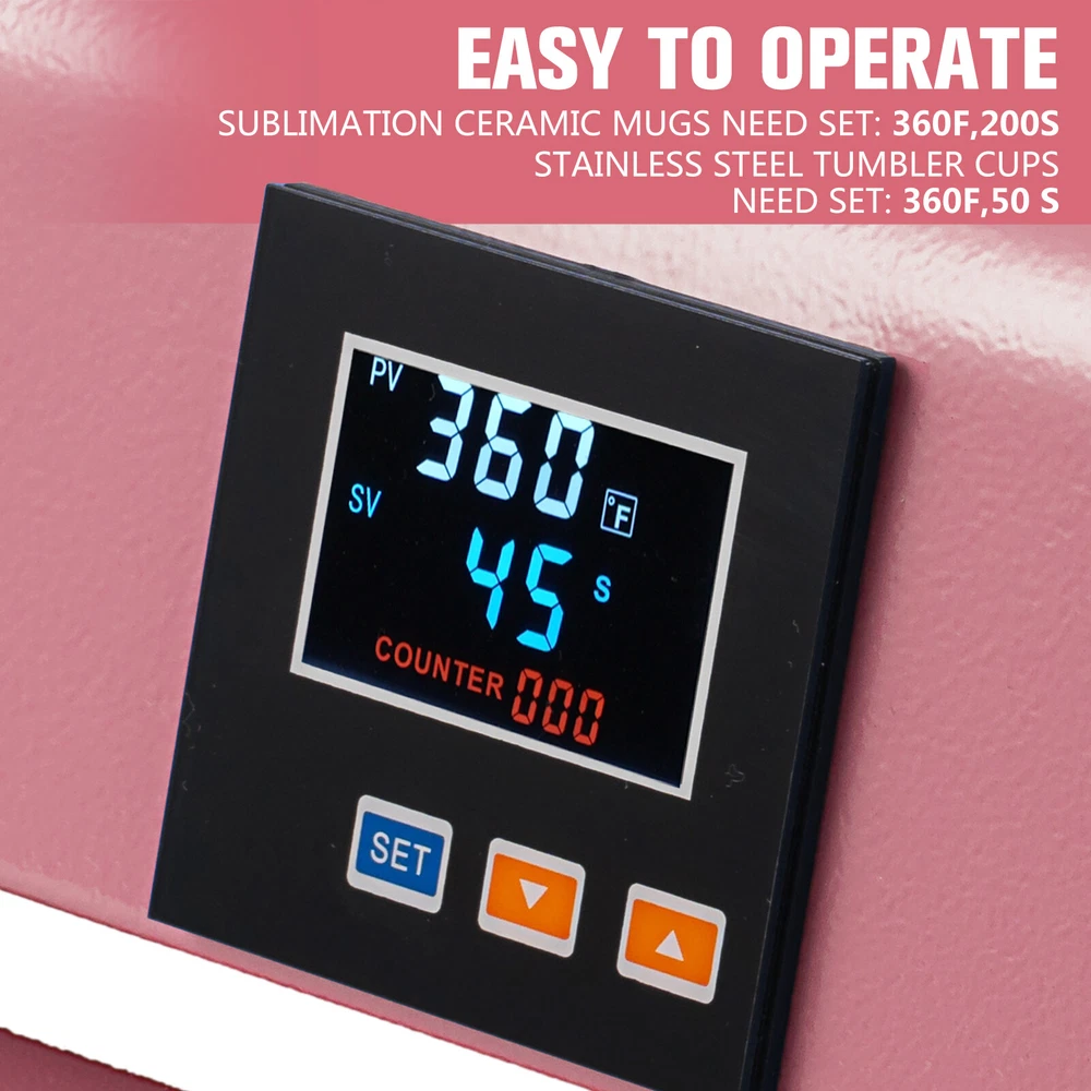 Need Help? Contact Us 9:00am-2:00am PST Sunday-Friday FAST SHIPPING WITHIN 24 HOURS 100% MONEY BACK GUARANTEE BUY WITH CONFIDENCE American Business ALL ITEMS IN STOCK IN CALIFORNIA American STANDARD PRODUCTS QUALITY GUARANTEED 110V Tumbler Mug Heat Press Machine 16/20/30 OZ Cup Transfer Sublimation Printer WHY SHOP WITH BLTPRESS? Excellent product at an excellent price,Fast shipping,Highly recommend,A+++ ( e***a ) Item was as described and arrived quickly. Great Seller to deal with. Awesome! ( o***f ) I could not be any happier my purchase! and service! Great!!! Thank you ( a***5 ) DESCRIPTION 110V 16 OZ/20 OZ/30 OZ Tumbler Mug Heat Press Machine This digital mug heat press transfer machine could transfer colorful pictures and text of sublimating and dissolved printing ink onto ceramics, glasses and textiles.LCD digital control functions provides a accurate temperature and heating time to your job. It can accommodate a variety of mug sizes and is a great press to get started in mug sublimation. The tumbler heat press machine can for the 12 OZ 16 OZ 20 OZ 30 OZ straight sublimation tumblers heat transfer print.Also can for 2 pieces 11 OZ/15 OZ sublimation ceramic mugs sublimation print. About the item: √√Specification: The tumbler heat press machine is 110 V,500 W,the heat press attachment length is 27 CM/10.6 Inch. The 30 OZ tumbler press machine temperature range is 0-464 F,time range is 0-999 S. √√Widely Application: It can sublimation print the 11 oz or 15 oz sublimation ceramic mugs 2 pieces in one time,and it's can print the straight sublimation tumbler in various sizes.The diameter range is 2.83-3.43 inch. √√Sublimation Printing Parameters: Sublimation ceramic mugs need set in 360 F,200 S.Sublimation stainless steel tumbler cups mugs need set up in 360 F,50 S,if your print designs is the full wrap one,we suggest print twice. √√Easy to Use: The tumbler press machine is easy to use and store,it's portable and just need small work space. √√Warranty: The warranty for our tumbler press main parts:tumbler press attachments,main board is lifetime.If have any problems during using the tumbler press,just feel free contact with us,we'll help solve it within 24 hours. 5 STEPS TO PRINT A CUSTOM MUG: 1.Prepare the customer design in ai.Jpg.Pdf. Format,fit them in a template. 2.Print the design with sublimation printer,sub ink and sub paper. 3.Cut the printed paper and wrap the mug with thermal tape. 4.Use this Tumbler Press for Logo or graphic design print. 5.Got your quality mugs with design printed. How to set the parameters: 1, Press "SET" button to enter temperature mode, then press "▲" or "▼" to adjust temperature value. 2, Press "SET" button again to enter time setting mode, then press "▲" or "▼" to adjust time value. 3, Press "SET" button one last time to save the settings. Features Digital LED controller- Automatic digital timer. Solid steel welded framework. Newest heater technology. Soft heater liner for accommodating inconsistent mugs. Temperature readout accuracy +-2°F. CE Certificated Free lifetime warranty SpecificationS Condition : Brand new Color : Black Power input : 110V/60Hz (US Plug) Wattage : 900W Temperature range : 0-867℉ / 0 - 464℃ Timer control : 0 - 999 seconds Time for heating up : 1-3 minutes Mug Attachment Size: L 10.6 x W 3.4 Inch Diameter Range: 2.65-3.4 Inch Material : Metal Maximum Heat Press Cup Volume : 30 oz Maximum Cup Diameter : 3.4 inch Maximum Cup Height : 10.6 inch Stainless steel tumbler: 360 F,50 S. Ceramic mug: 360 F,200 S. Weight : 16 lbs Warranty : Lifetime Certification : CE Approved Packing Size: 15.35 x 11.31 x 23.22 inch /39 x 29 x 59 cm IN the Box Fully-assembled machine x 1 US Plug x 1 3.4"x10.6" Cup Attachment x 1 Pair of Heat Resistant Gloves x 1 Heat Resistant Tape x 1 Bolt Driver x 1 Manual x 1 Delivery All items are dispatched from our warehouse in HACIENDA HEIGHTS, CA. We aim to dispatch all products within one working day after your full payment is made. If you need to cancel a purchase after the product has been dispatched, please note that the postage fee may not be refundable. Additional postage fees may apply for re-delivery or re-direction requests. Orders placed on weekend will be shipped within 2 days. Some products may be dispatched in more than one carton. International Buyers – Please Note: Import duties, taxes and charges are not included in the item price or shipping charges. These charges are the buyer’s responsibility. UPS/FEDEX: 3-5 business days. | USPS: 2-6 business days. | Truck company: 3-8 business days. We only ship to the Lower 48 states, and we do not ship to FPO, APO or PO Box addresses. Returns & Warranty We provide return & refund service within 60 days after the buyer receives the product. (product kept in original condition, a restocking fee may apply). We guarantee the product to be new and free of manufacturer defects for 1 year for the original purchaser only. If you have a problem with the product. Please contact us through eBay and include the original purchase information (i.e. your name , address, email and purchase receipt number). We will require a picture of the damaged part for verification. We will repair or replace, at our discretion, any unit determined to be faulty within the warranty period. The unit warranty does not cover accidents, develop a fault due to misuse or improper installation. The buyer will be liable for the shipping costs associated with warranty claim.