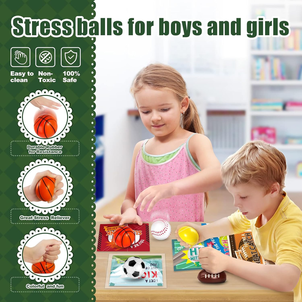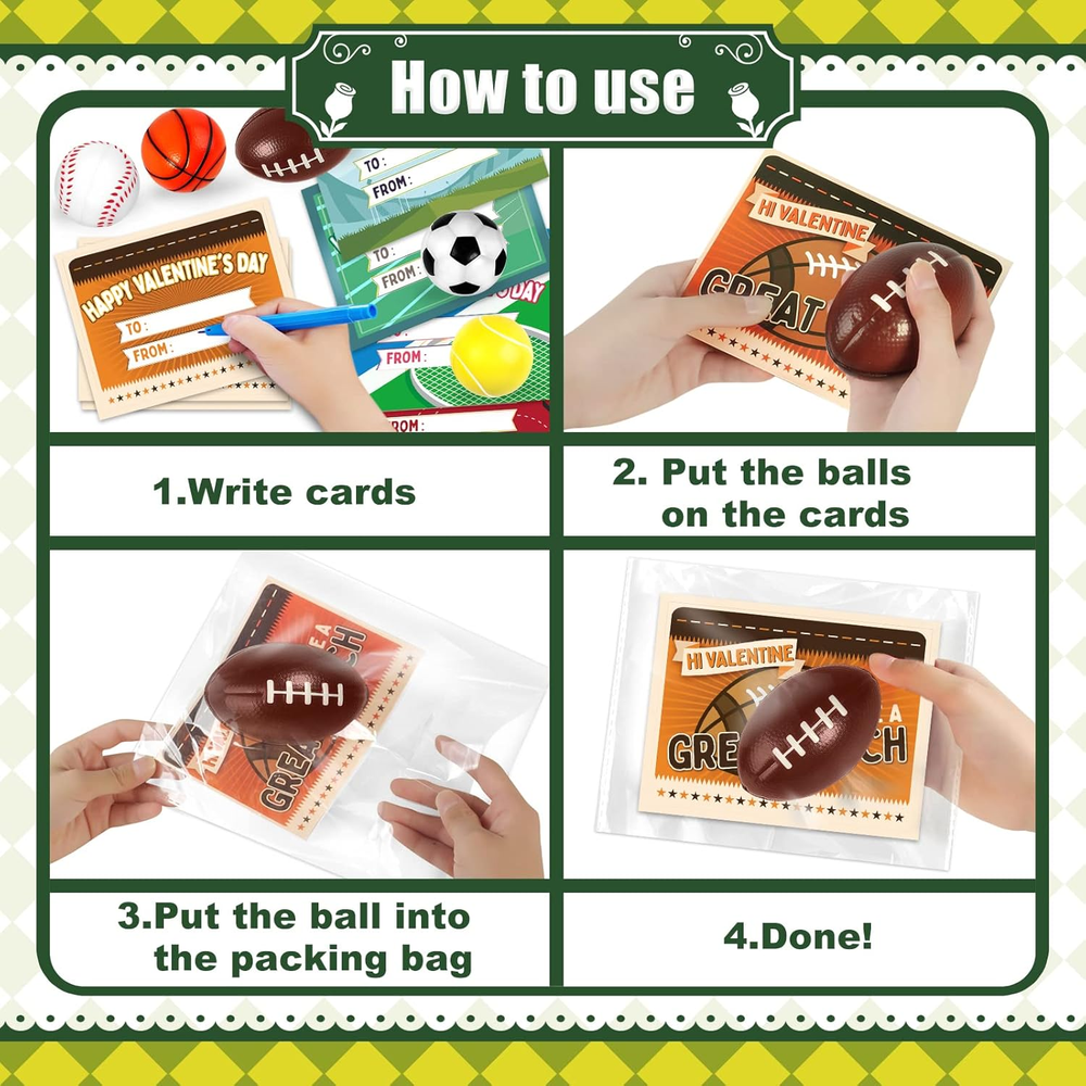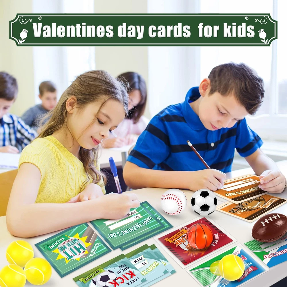 SUPER VALUE PACK! Our Valentine's Day Card Gift Set for kids includes 30 valentine's day cards and 30 mini sports balls! These mini foam balls were made with great quality materials and feel good for squeezing. Squeeze one of the sport ball, all your stess will melt away! This Valentine's squeeze balls will let your kid give more than a normal card. WELL-DESIGNED VALENTINE'S CARDS. Each design of the valentine's day cards has both a sport theme and a unique punchline of greeting to match the ball, makes the cards more attractive. The valentine's day cards are thick, double-sided printed with beautifully patterned. The exchange cards with mini squeeze balls gift set will be a hit among kids. FUN VALENTINE'S GIFT FOR KIDS. Valentine's greeting cards with sport balls sets are perfect for kids classroom exchanges, preschool or elementary school Valentines parties, Valentine's event, or any Valentine's game prize, love notes, party favor supplies and more! Ideal Valentine's day gift for boys and girls. This Valentine's Day Party Favor Toy will bring joy and happiness to everyone on Valentine's day. EXCHANGE GIFT AND SHARE LOVE. All kids will love novel Valentine's day gifts. Give out the valentines cards is a fun way to encourage kid's social skill development and teach kids to share, love and make friends. A great chance to express love to families, friends and classmates. GUARANTEED PURCHASE - For any reason if you are not completely satisfied with your purchase, please feel free to message us through "contact sellers". We will reply to you within 24 hours. Product Description