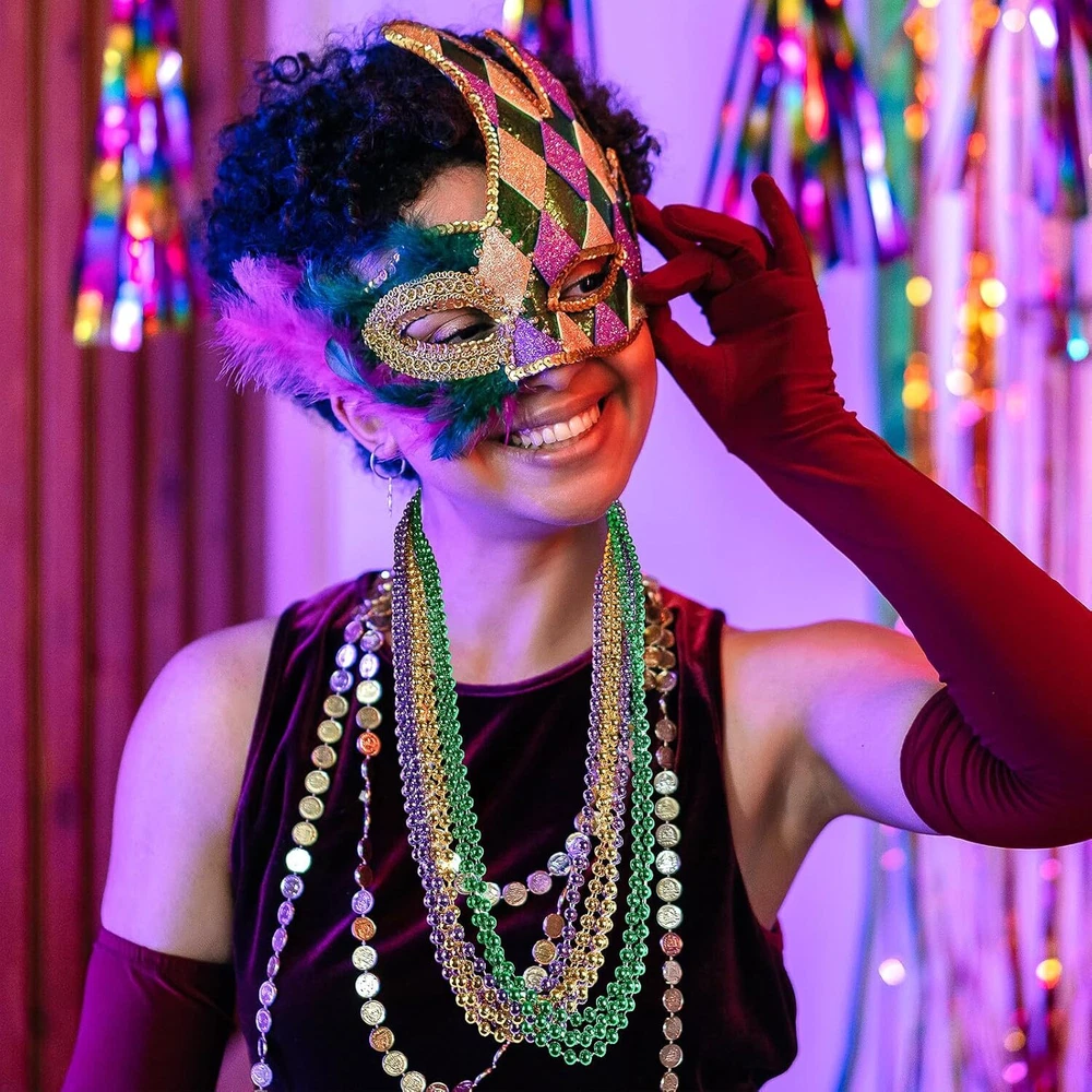 Free eBay listing template designed by dewiso.com 30 Pack Mardi Gras Beads Necklaces Bulk, Mardi Gras Accessories for Party Favors, Gold Green and Purple Decoration St Patricks Day Necklace Party Supplies Mardi Gras Decor For Party, School Event,Home FREE AND FAST SHIPPING! 30Pcs Mardi Gras Accessories: Each mardi gras decorations set contains 30 mardi gras beads necklaces. There are three colors, purple, gold and green, the number of each color is 10. Mardi Gras beads necklace can meet your decoration needs Perfect Mardi Gras Decorations: The mardi gras necklace beads is great as mardi gras party supplies, st patricks day necklace, mardi gras party decorations, kids birthday party, school events or other places. Mardi gras necklaces beads make your carnival more festival. With purple gold green color, it can become the highlight of the party or celebration High-Quality Materials: The mardi gras beads are made of high-quality materials. Each mardi gras beads bulk decorations are carefully crafted, and the gloss and texture are also great. You can enjoy the happiness and joy of these mardi gras beads bulk Widely Applicable for Many Occasions: The mardi gras beads necklaces are not only suitable for decoration, carnival decoration, st patricks decoration and birthday party. Also ideal choice as home decorations, school events supplies, classrooms, social gatherings, etc., to create a holiday atmosphere. You can reuse these mardi gras beads for different party Enjoy Our Service: When you buy Mardi Gras Beads Necklace in our store, if you have any further questions,please don't hesitate conta ct us by "Ask a question",we will follow up with you as soon as possible Tips: Not for children under 3 yrs. Recommended for kids above 3 years old; Please using under adult's supervision when the children under 3 years old Product We offer a 30-Day Return Policy on items which you are not completely satisfied with. You have the option for a full-refund or an exchange of the item. No returns are available on items shipped outside of the US . Shipping We offer Free Shipping to the US and ship within 2 business days of payment, usually sooner. We use UPS express shipping. That's why your products are usually delivered within 3 days . Contact We try our very best to make sure every customer is completely satisfied. If there's a problem , message us! We're happy to help. 24/7 live chat available.