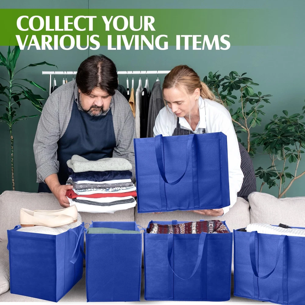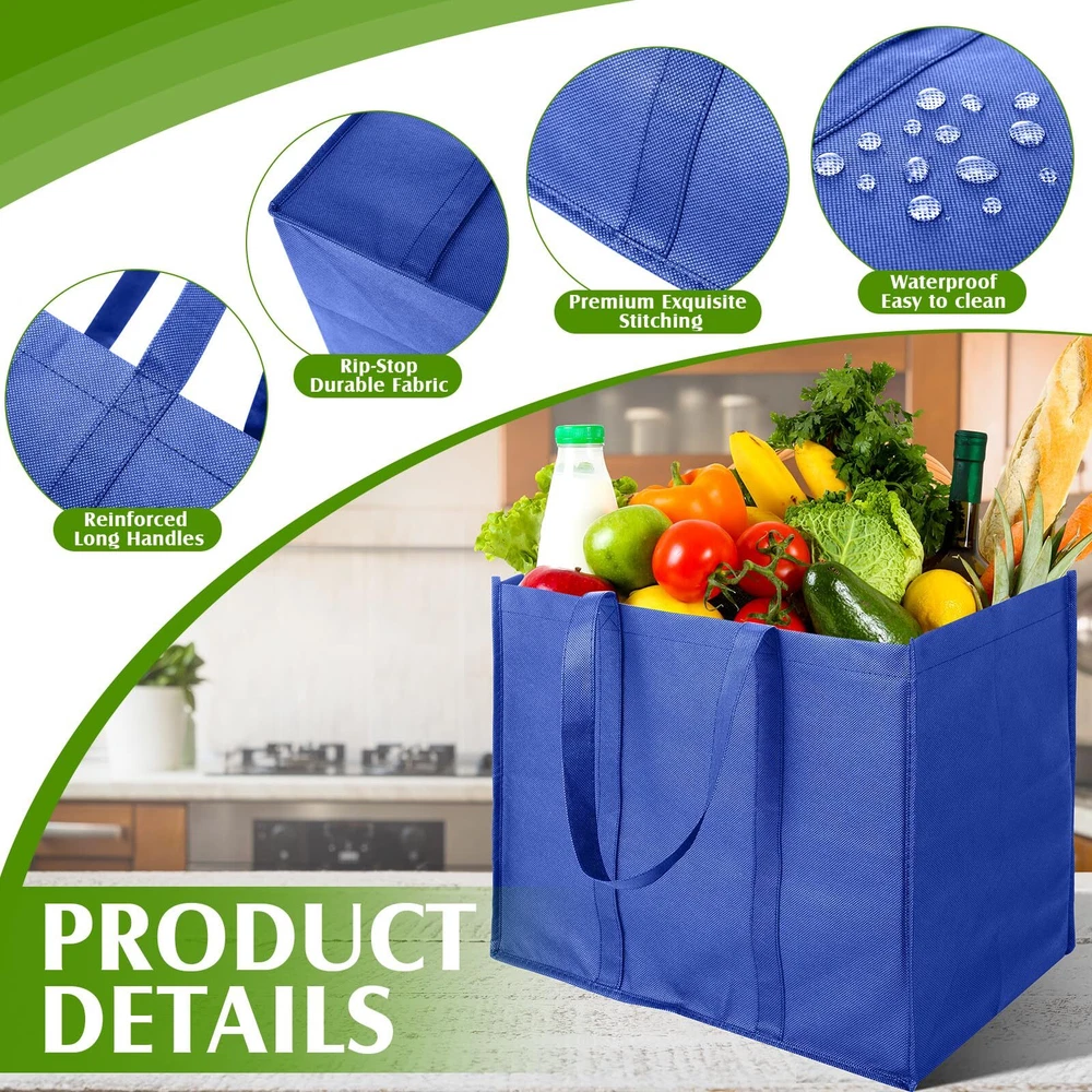 Extra Large Capacity: you will receive 30 pieces of foldable tote bags, sufficient quantity to meet your various needs and replacements; Each packable tote bag measures approx. 16.1 x 13 x 10.2 inches/ 41 x 33 x 26 cm (L x H x W), can be stored in kitchens, cars, handbags, backpacks and suitcases, ideal for daily use and travel Heavy Duty: these shopping bags for groceries heavy duty are made of non woven fabric, equipped with wide and long reinforced handles that are reinforced and cross stitched to ensure durability, allowing you to carry them easily by hands or over the shoulder; The large tote bag bulk is heavy duty, can hold up to 45 lbs things, won't easily break, serving you for a long time Washable and Reusable: the heavy duty tote bag can be folded into a small volume for easy storage, convenient for going shopping and saving space; The large tote bag is washable and reusable, easy to clean and maintain, just wipe off the dirt with a damp cloth or rinse under cold water, then let it air dry With Sturdy Bottom: these reusable tote bags with handles also come with sturdy bottoms, which can stand sturdily and upright, providing stability for your items, and keep them from tipping over when carrying the reusable grocery bags washable or when being placed in your car, trunk, shopping cart, counter, or floor, also easy for your loading and unloading Wide Ranges of Usages: the cloth tote bag is versatile to use in daily life, ideal for carrying and storing vegetables and fruits, toys, food, clothes and so on; The extra large shopping bag is also suitable for various occasions, including camping, picnic, barbecue, painting, traveling, shopping, transporting, supermarket, farmers market, school, office, library, gym, beach and daily use