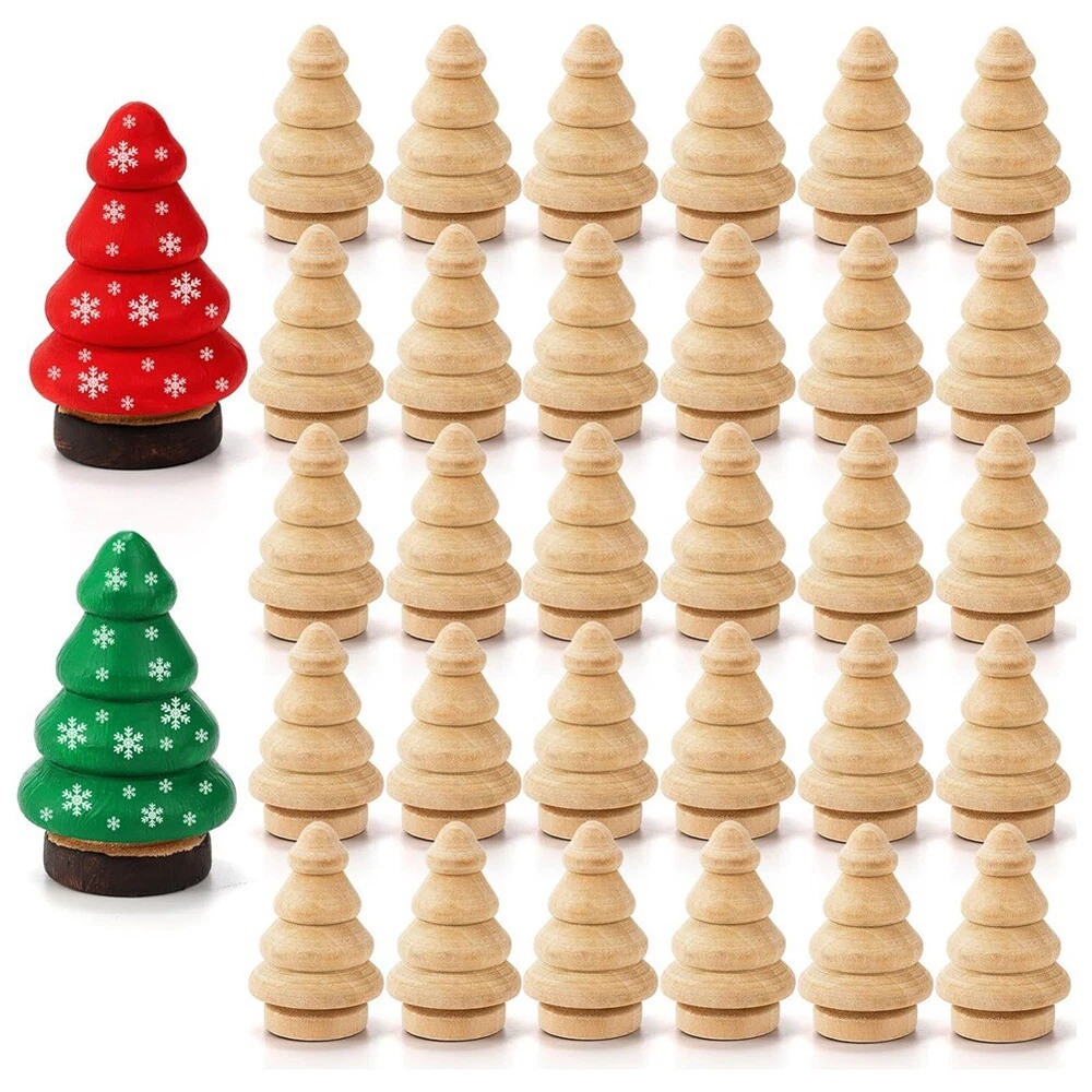 30 Pack Unfinished Wooden Christmas Tree, Natural Wooden Miniature Tree7326 What You Will Get: Package includes 30 pack unfinished mini wooden christmas tree. SIZE: . 2.2inch in height, 1inch in bottom diameter. They looks cute, perfect for Christmas decoration. Enough quantity to meet your daily usage or Christmas festival decor. High Quality Material: Our unfinish small christmas tree are made of premuim quality natural wood, sturdy and . PLEASE NOTE: Due to the mini trees are made of natural wood, it is unavoidable with unique natural textures or flecks. Perfect Detail: This mini wooden christmas tree were laser cut and fine polishing, no burr, smooth , will be nice to DIY with painting and staining. Come to use our wooden Christmas trees to create personalized Xmas gift with your kids, friends and family. Painted Freely: You can use unfinished wooden christmas tree to paint or stain any colors or patterns according to your preference, then match with different styles. Use your imagination to paint it as you like, and you will get the fun of DIY. Great Christmas Decoration: These unfinish small wooden christmas tree conform to Christmas theme and winter atmosphere, great for winter christmas theme and christmas tree decoration. It can be the cutiest christmas gifts to your family or friends. Colour:Wood color Material:Wood Size:5.7 x 3.6cm Package Contents: 30 x Wooden Peg Dolls