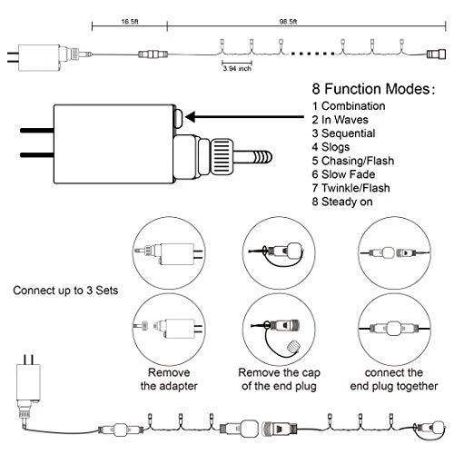 Return Policy Fast Delivery Trusted seller 300 LED String Lights Outdoor Indoor, Extra Long 98.5FT Christmas Lights, 8 Lighting Modes, Plug in Waterproof Fairy Lights for Wedding Party Bedroom Decorations (Multicolor) Product Description 98.5ft Christmas Decorations string lights: With 300 multicolor individual LED bulbs. Each fairy string lights has end-to-end connection; you can connect up to 3 sets together to illuminate a wider range. 8 Lighting Functions: Our Halloween string lights have 8 lighting modes: combination, in waves, sequential, slogs, chg/flash, slow fade, twinkle/flash, and steady on. Fit different occasions, moods, feelings, holidays, festivals, anniversaries, etc. Pressing the round button on the transformer to change the lighting modes. 29V Low Voltage String Lights: Keep at a low temperature state after lighting up for hours, ensure and maximize the safety. Directly plug in and unplug it for power on and off. US standard outlet, voltage 110V. Adapter to the first LED light: 16.5ft. Total length (lights string and leading line): 115ft. Waterproof & Widely Use: The strong construction makes the string lights tough and sturdy, and waterproof designed string lights perfect for indoor outdoor decorations, ideal for Christmas, wedding, party, home, bedroom, wall, garden or balcony decorations. Tips: Please note that the LED and transformer are IP 44 waterproof, so it can meet normal use outside but not enough to put under water directly. Shipping Returns Payment Shipping Shipping is FREE to all addresses other than APO/PO boxes in the lower 48 states. All our stock ships from US-based warehouses. Shipped via USPS or UPS (depending on location and package weight) Unless stated otherwise, all orders will ship within 24-72 hours of your payment being processed. Check our feedback to see the great reviews of FAST shipping we offer. Returns Seller does not accept returns Payment We currently accept payment via eBay managed payments only. Once payment is cleared, we will dispatch your shipment within 1-3 business days. Please refer to the "Shipping" tab for more information regarding shipping speed to your destination.