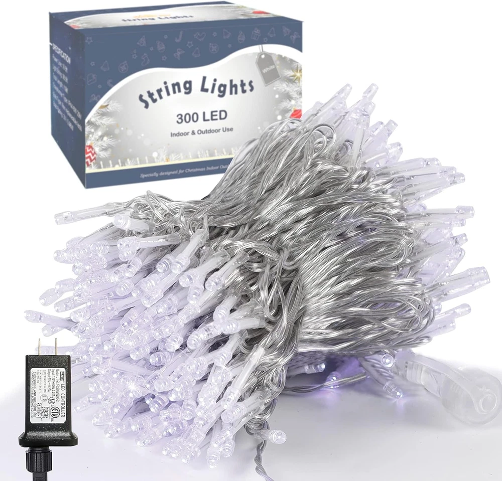 Store New Arrivals Add to Favorite View Feedback Contact Fast deliveries to the customer's home Quality customer service John Make the customers happy! 300 LED String Lights Outdoor Indoor, Extra Long 98.5FT Super Bright Christmas Lights, 8 Lighting Modes, Plug in Waterproof Fairy Lights for Holiday Wedding Party Bedroom Decorations ( White) Description 98.5ft Christmas Decorations string lights: With 300 Cool White individual LED bulbs. Each lights has end-to-end connection, you can connect up to 4 sets together to illuminate a wider range. 8 Lighting Functions: Our Halloween string lights have 8 lighting modes: combination, in waves, sequential, slogs, chasing/flash, slow fade, twinkle/flash, and steady on. Fit different occasions, moods, feelings, holidays, festivals, anniversaries, etc. Pressing the round button on the transformer to change the lighting modes. 29V low voltage string lights: Keep at a low temperature state after lighting up for hours, ensure and maximize the safety. Directly plug in and unplug it for power on and off. US standard outlet, voltage 110V. Adapter to the first LED light: 16.5ft. Total length(lights string and leading line): 115ft. Waterproof & Widely Use: The strong construction makes the string lights tough and Christmas, Halloween, Thanksgiving, wedding, party, home, bedroom, wall, garden or balcony decorations. Product Description Feature: 300 LED 98.5ft White Xmas String Lights 98.5ft Xmas Decorations string lights with 300 White individual LED bulbs. Perfect for indoor and outdoor decorations. 8 lighting modes: combination, in waves, sequential, slogs, chasing/flash, slow fade, twinkle/flash, and steady on. Perfect for Christmas, Halloween, party, Valentine's Day, wedding, home, window, bathroom, festival, Holiday, shows, restaurant, hotel, commercial building, shopping center etc. Specification: Material: Plastic Light Color: Cool White LED Count: 300 pcs Total Length (end to end): 115FT String lights: 98.5FT Waterproof Level: IP44 Voltage: 110V Output: 29V safe low voltage Power Supply: Adapter Powered Package Including: 1 x 300 LED White String Lights Some More Christmas Decorations Add to Cart Add to Cart Add to Cart Add to Cart Add to Cart Add to Cart Customer Reviews 4.4 out of 5 stars 197 4.4 out of 5 stars 197 4.4 out of 5 stars 197 4.4 out of 5 stars 197 4.1 out of 5 stars 714 4.5 out of 5 stars 276 4.5 out of 5 stars 276 Price $37.99 $ 37 . 99 $39.99 $ 39 . 99 $39.99 $ 39 . 99 $37.99 $ 37 . 99 — $29.69 $ 29 . 69 $26.99 $ 26 . 99 Package: 1 Pack 1 Pack 1 Pack 1 Pack 1 Pack Set of 4 Set of 3 Number of Light Sources: 1000 LED 1000 LED 1000 LED 1000 LED 10 Count 70 LED 60 LED Powered Source: Adapter Powered Adapter Powered Adapter Powered Adapter Powered Plug In Adapter Powered Adapter Powered Material: Plastic Plastic Plastic Plastic Plastic PVC Plastic, Metal PVC Plastic, Organza Light Color: Cool White Warm White Multicolor Red & Green Clear Warm White Warm White Some More Christmas Decorations Add to Cart Add to Cart Add to Cart Customer Reviews 4.3 out of 5 stars 131 4.3 out of 5 stars 131 4.4 out of 5 stars 395 4.4 out of 5 stars 395 4.4 out of 5 stars 395 4.4 out of 5 stars 75 4.1 out of 5 stars 169 Price — — $14.99 $ 14 . 99 — — $25.99 $ 25 . 99 $24.99 $ 24 . 99 Package: 1 Pack 1 Pack 2 Pack 2 Pack 2 Pack Set of 6 2 Pack Number of Light Sources: 50 LED 50 LED 50 LED Each 50 LED Each 50 LED Each 100 Count 100 LED Powered Source: Adapter Powered Adapter Powered Battery Powered Battery Powered Battery Powered Plug In Battery Powered Material: Plastic Plastic Plastic Plastic Plastic Plastic Plastic Light Color: Warm White Multicolor Multicolor Cool White Warm White Clear Warm White Warm White Some More Christmas Decorations Add to Cart Add to Cart Add to Cart Add to Cart Add to Cart Add to Cart Add to Cart Customer Reviews 4.6 out of 5 stars 14,708 4.6 out of 5 stars 14,708 4.5 out of 5 stars 2,224 4.5 out of 5 stars 2,224 4.5 out of 5 stars 2,224 4.5 out of 5 stars 2,224 4.5 out of 5 stars 2,224 Price $27.99 $ 27 . 99 $19.99 $ 19 . 99 $11.89 $ 11 . 89 $11.89 $ 11 . 89 $11.04 $ 11 . 04 $9.98 $ 9 . 98 $11.89 $ 11 . 89 Package: 1 Pack 1 Pack 1 Pack & 3 Pack 1 Pack & 3 Pack 1 Pack & 3 Pack 1 Pack & 3 Pack 1 Pack & 3 Pack Number of Light Sources: 200 LED 200 LED 150 Each 150 Each 150 Each 150 Each 150 Each Powered Source: Adapter Powered Adapter Powered Plug In Plug In Plug In Plug In Plug In Material: Plastic Plastic Plastic Plastic Plastic Plastic Plastic Light Color: 20 Colors Red & Green Red Blue Green Clear Warm White Multicolor Some More Christmas Decorations Add to Cart Add to Cart Add to Cart Add to Cart Add to Cart Add to Cart Add to Cart Customer Reviews 4.6 out of 5 stars 4,715 4.6 out of 5 stars 4,715 4.4 out of 5 stars 191 4.4 out of 5 stars 191 4.6 out of 5 stars 14,708 4.6 out of 5 stars 14,708 4.6 out of 5 stars 14,708 Price $21.99 $ 21 . 99 $21.99 $ 21 . 99 $32.99 $ 32 . 99 $32.99 $ 32 . 99 $18.99 $ 18 . 99 $18.99 $ 18 . 99 $16.99 $ 16 . 99 Package: 1 Pack 1 Pack 1 Pack 1 Pack 1 Pack 1 Pack 1 Pack Number of Light Sources: 300 LED 300 LED 1000 LED 1000 LED 200 LED 200 LED 200 LED Powered Source: Adapter Powered Adapter Powered Adapter Powered Adapter Powered Adapter Powered Adapter Powered Adapter Powered Material: Plastic Plastic Plastic Plastic Plastic Plastic Plastic Light Color: Red Red & Green Warm White Multicolor Warm White Multicolor Green Some More Christmas Decorations Add to Cart Add to Cart Add to Cart Add to Cart Add to Cart Add to Cart Add to Cart Customer Reviews 4.5 out of 5 stars 742 4.5 out of 5 stars 742 4.5 out of 5 stars 742 4.5 out of 5 stars 742 4.4 out of 5 stars 5,088 4.5 out of 5 stars 683 4.5 out of 5 stars 683 Price $9.99 $ 9 . 99 $9.99 $ 9 . 99 $9.99 $ 9 . 99 $9.99 $ 9 . 99 $25.99 $ 25 . 99 $25.99 $ 25 . 99 $24.99 $ 24 . 99 Package: 8 Tubes 8 Tubes 8 Tubes 8 Tubes 1 Pack 1 Pack 1 Pack Number of Light Sources: 288 LED 288 LED 288 LED 288 LED 300 LED 300 LED 300 LED Powered Source: Adapter Pow