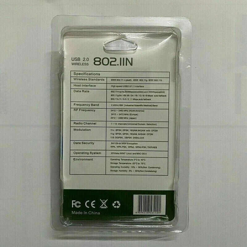 No need to install driver to work under win10 system Product information: Product model: 2dB 300m network card with antenna Product color: Black Product material: plastic + metal Applicable system: Windows Vista / XP / 2000 / 7 / 8 / 10, Linux, Mac OS USB head size: 3.6 * 1.5 * 1.2cm Antenna size: 10.8cm Package size: 15 * 9.5 * 0.9CM (blister package) Bare weight: 11g Weight of bare metal + CD: 18g Full set weight including disc: 37G Product chip: Product accessories: 1 * 300m network card 1*CD Shipping: 1) Free shipping :Usually we ship it via Hong Kong Post Air mail or Singapore Post Air Mail ,not expedited shipping.Usually it will take 7-15days to arrive USA,UK ,Canada,Australia,Japan,20-30days to other country. 2) Expedited shipping:USA, CA ,AU ,Europe Usually need 3-7 days arrive.other countries may have a day or two more,it must add 20-35 USD shipping fee(according to your country). 3) Customers can choose to suit their own shipping and please make sure that your shipping information is confirmed in ebay and paypal. 4) My items has still not arrived ? Read the shipping details first to determine the expected delivery time , if your items has not arrived within that time (weekends and holidays were not included ),please email us. 5) Please note The tax of import duty is not included in the item price or shipping fees. These charges are the buyer's responsibility. Please check with your country's customs office to determine what these additional costs will be prior to bidding or buying.